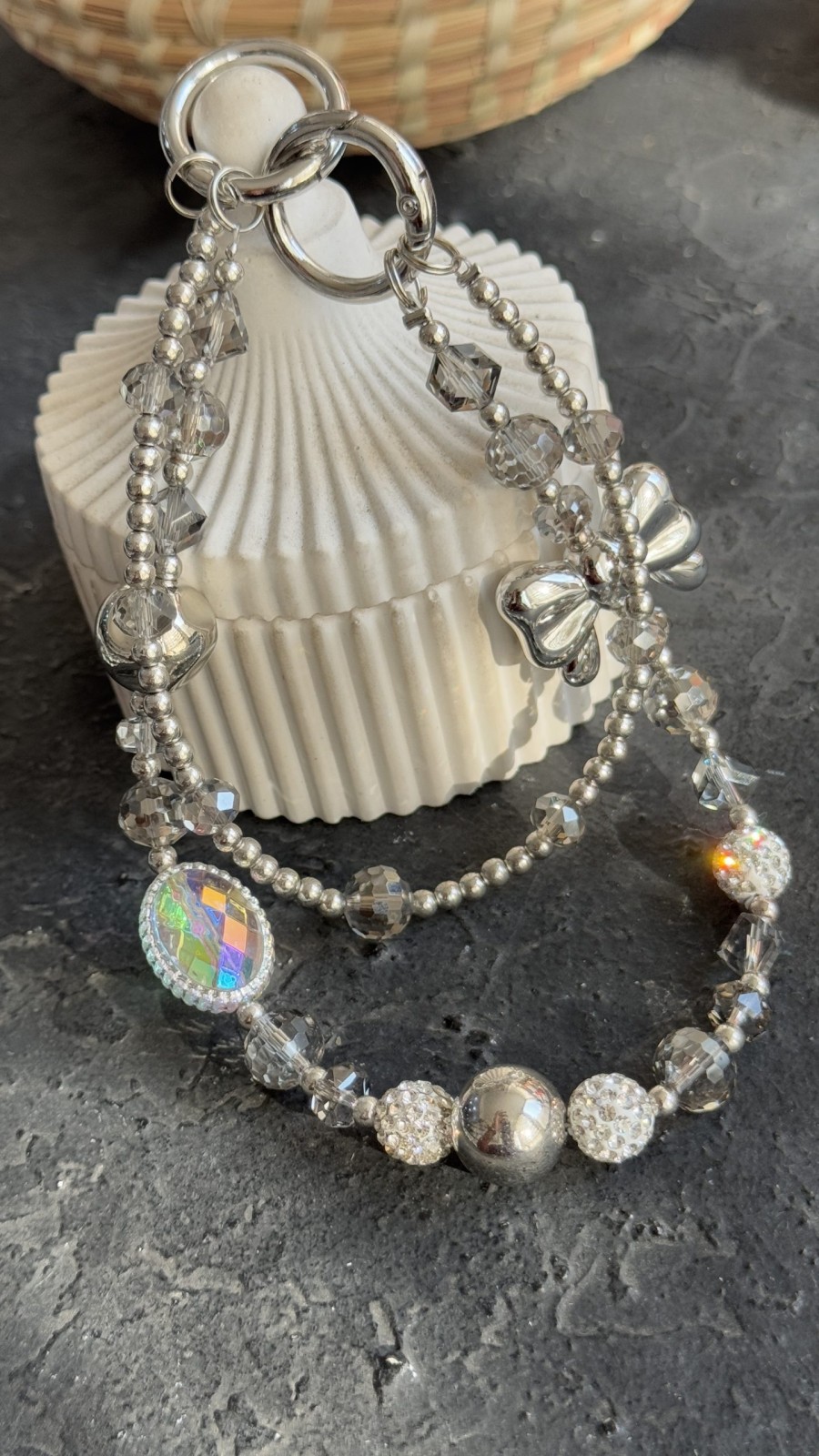 بند و آویز نگین انگشتری درشت پاپیون نقره ای