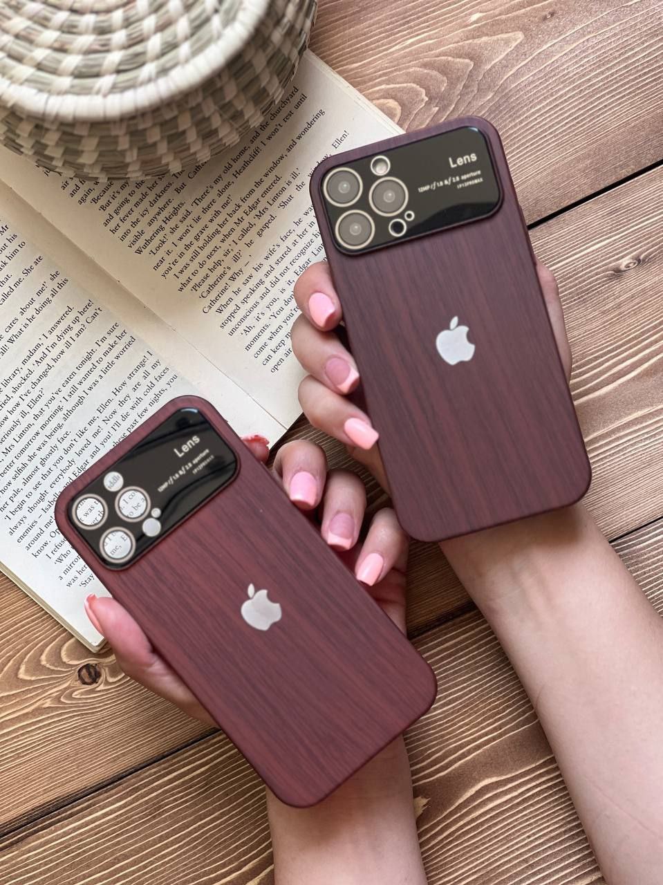 قاب موبایل آیفون کلاسیک طرح چوب و شیشه محافظ لنزدار
