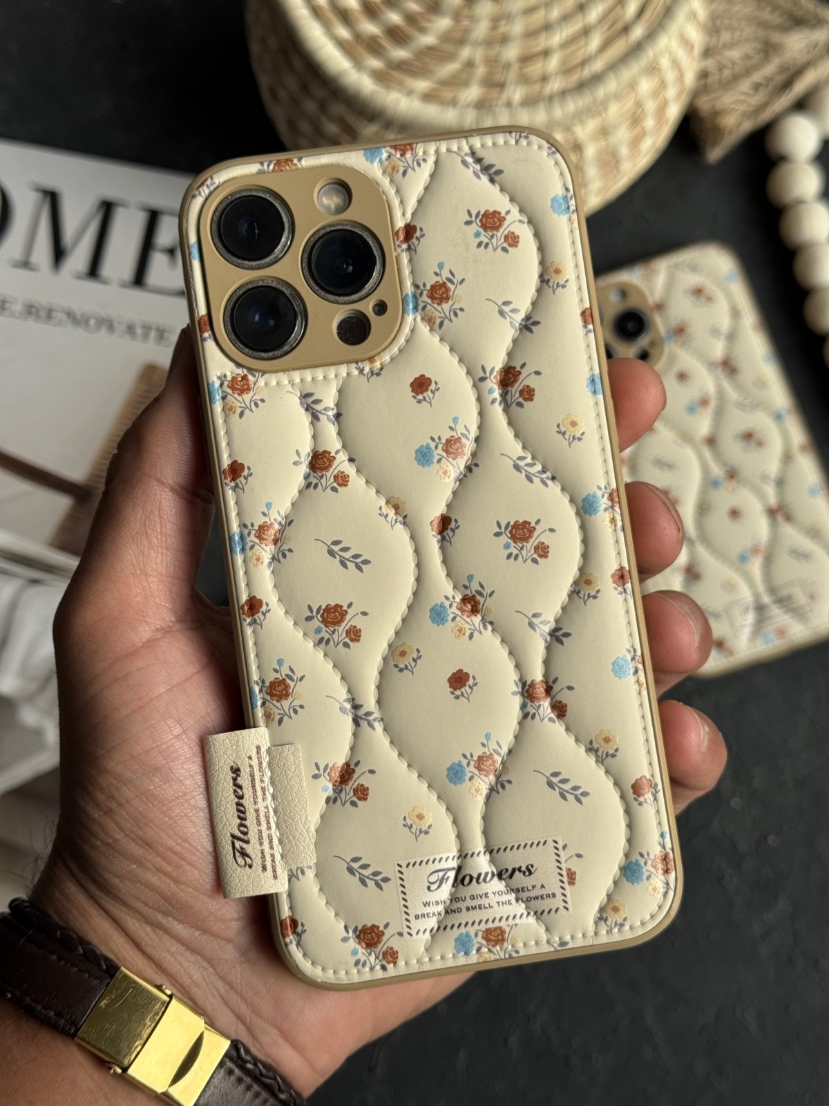 قاب موبایل آیفون گل رزالین پافری بالشتی