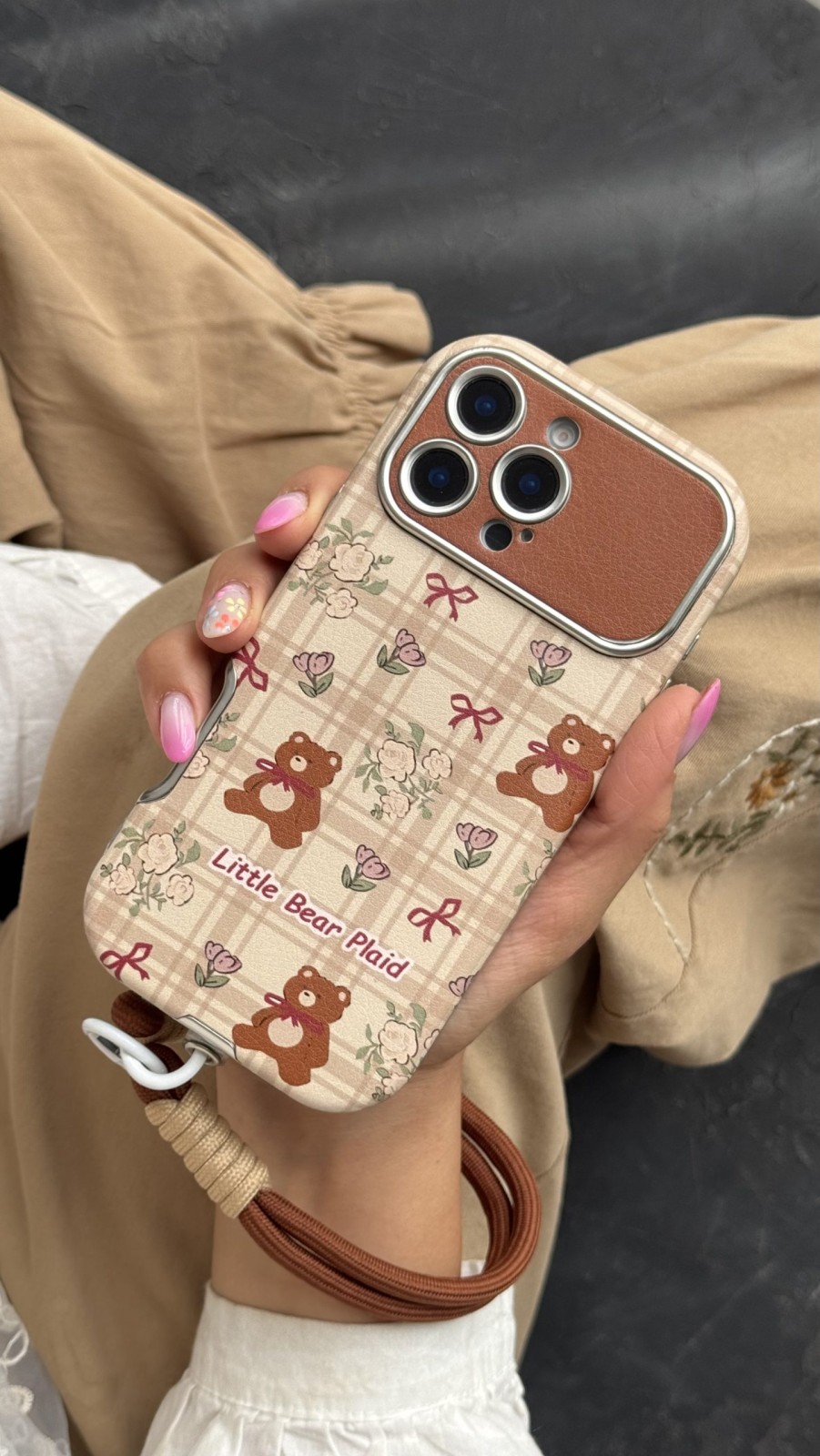 قاب موبایل آیفون خرس پاپیون استریپ + بندست کنفی ساده