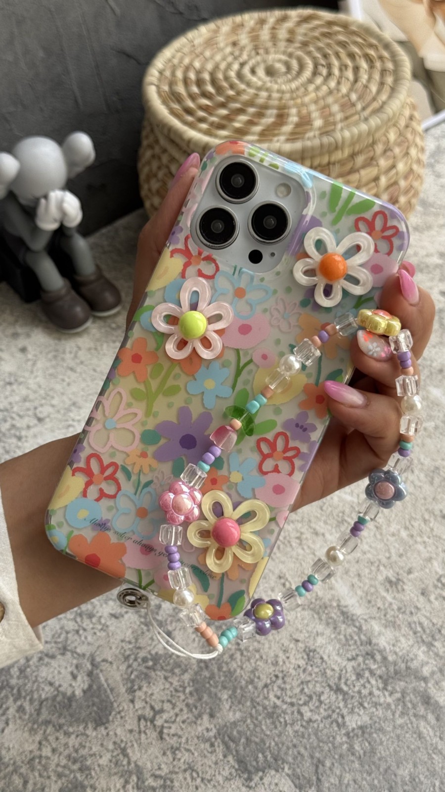 قاب موبایل ( آیفون ) گل بابونه رنگی رنگی برجسته + بندست