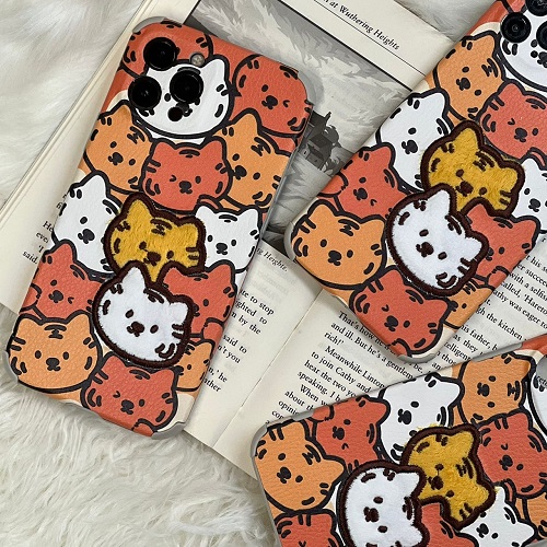قاب موبایل گربه نارنجی برجسته محافظ لنزدار