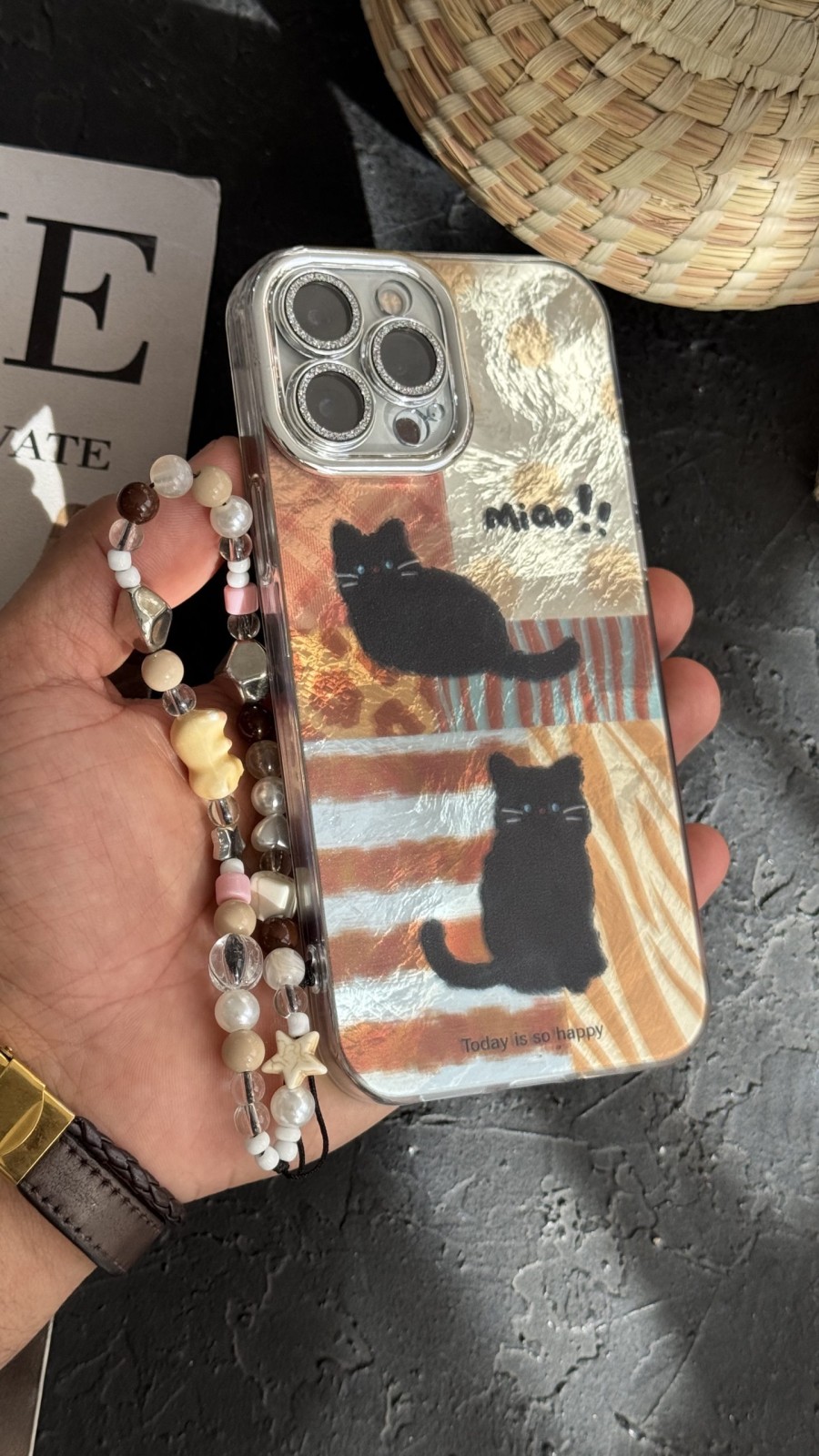 قاب موبایل ( آیفون ) پلنگی گربه سیاه میو + بندست