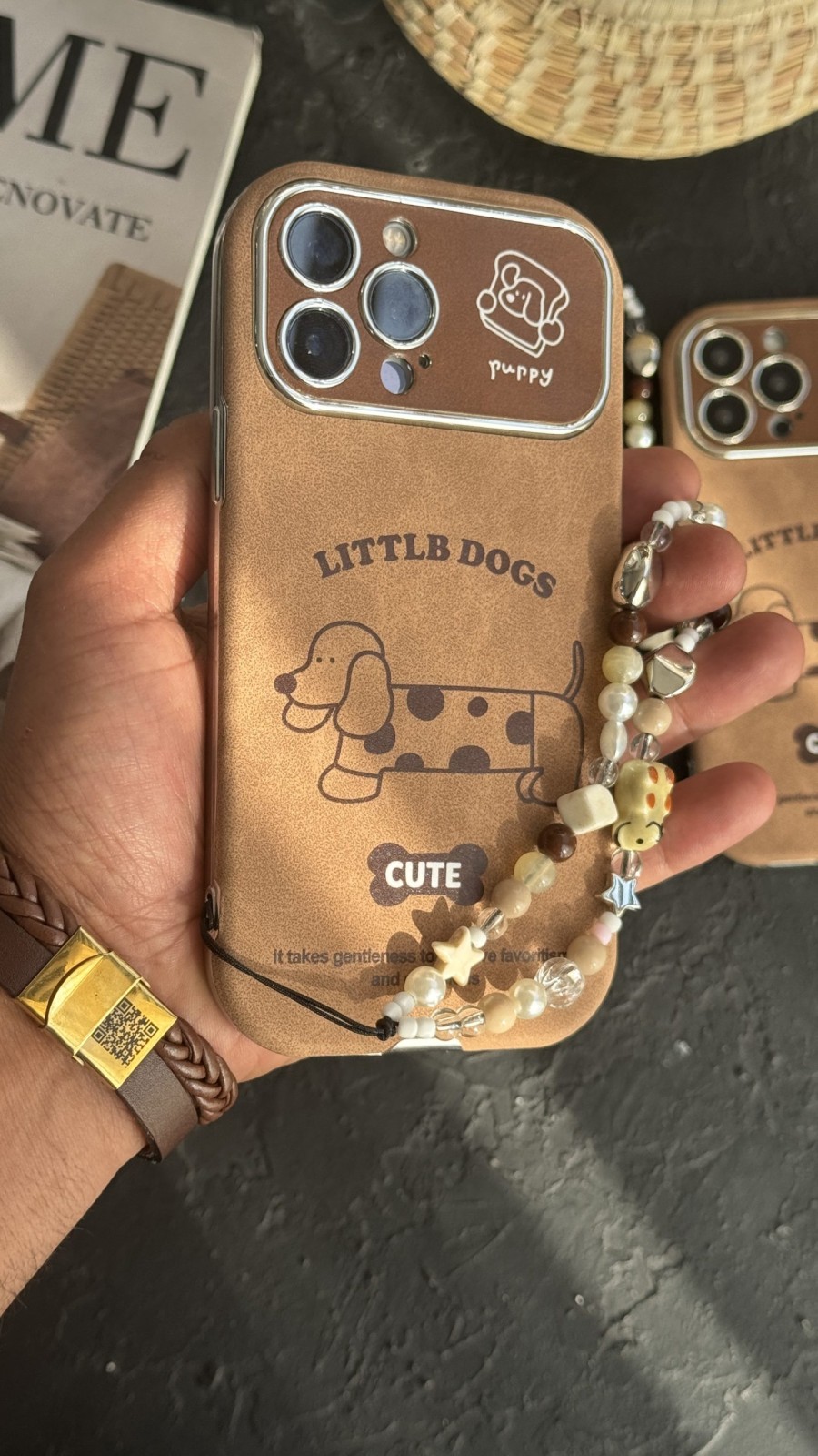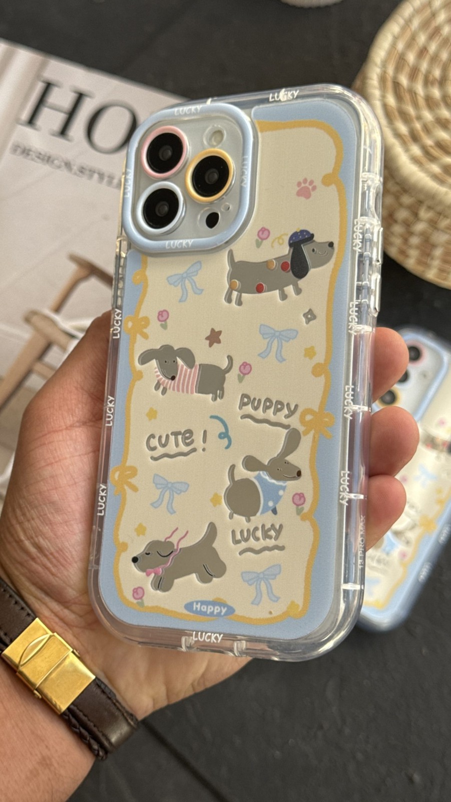 قاب موبایل ( آیفون ) کیوت پاپی خال خالی داکس هوند سوسیسی + بند