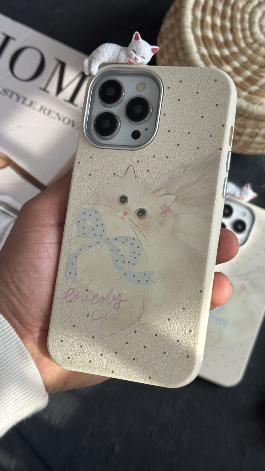 قاب موبایل آیفون گربه خوابالو خال خالی پاپیون