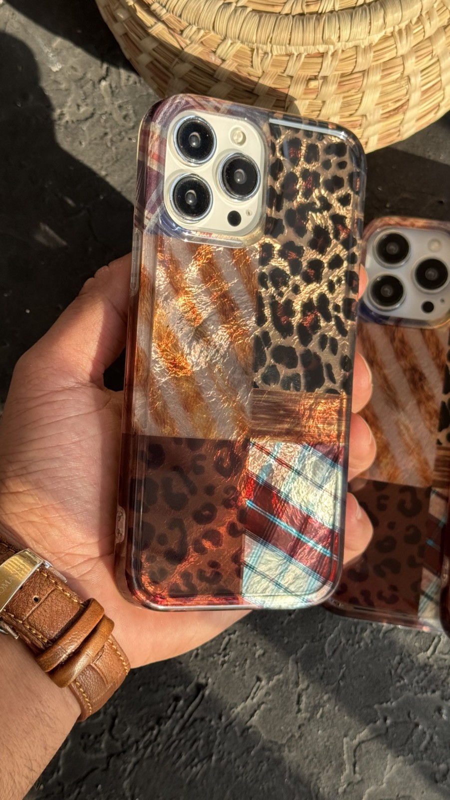 قاب موبایل ( آیفون ) پلنگی چهارخونه بافتنی
