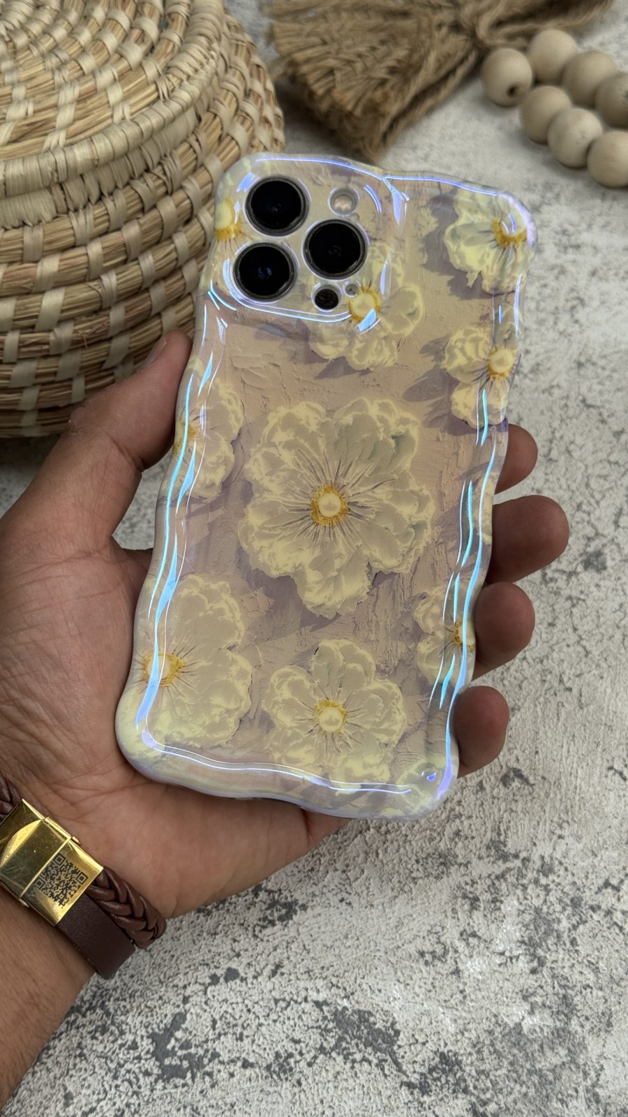 قاب موبایل ( آیفون ) گل برفی خامه ای