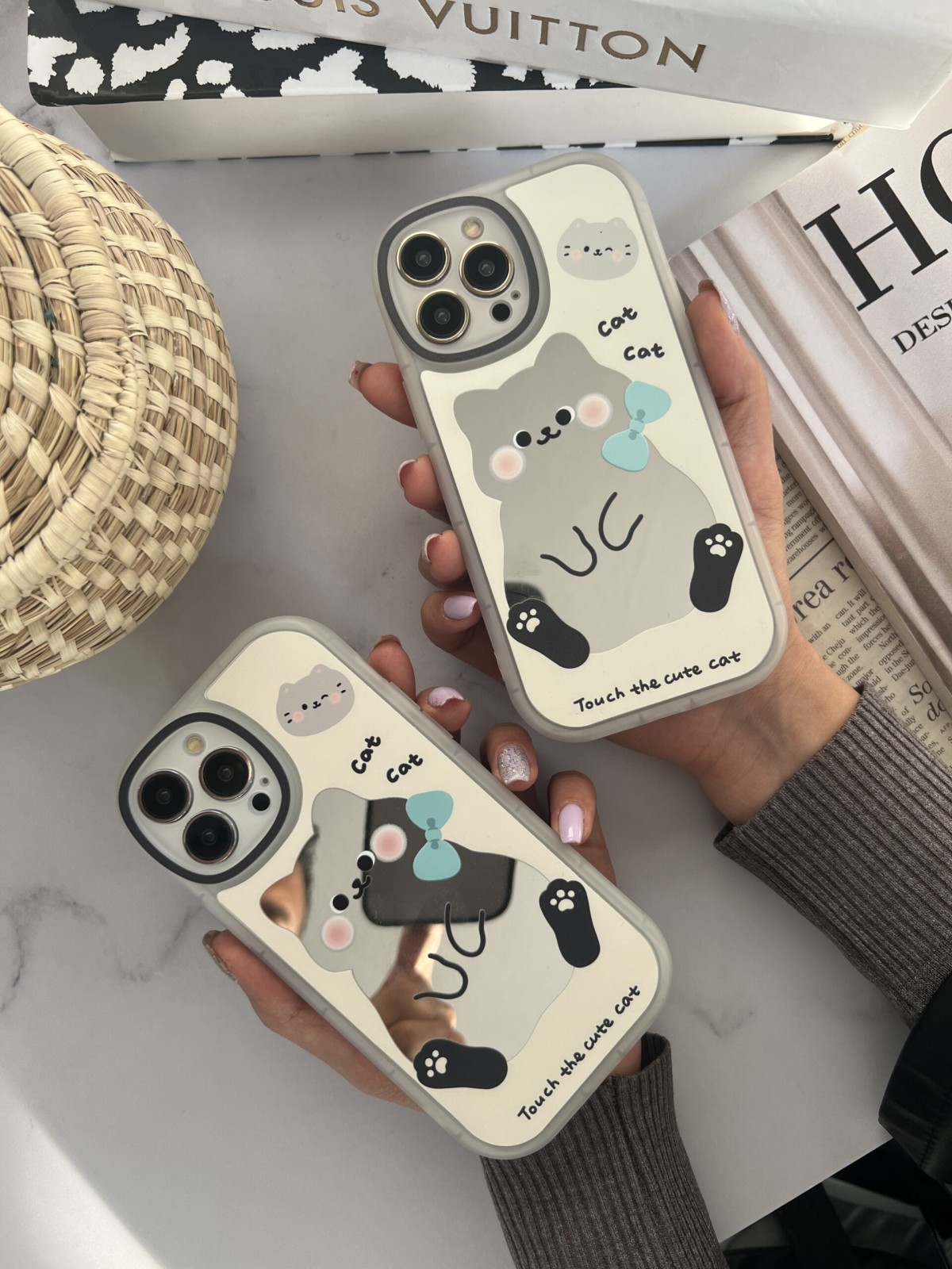 قاب موبایل آیفون کیوت کت گربه خجالتی آینه ای