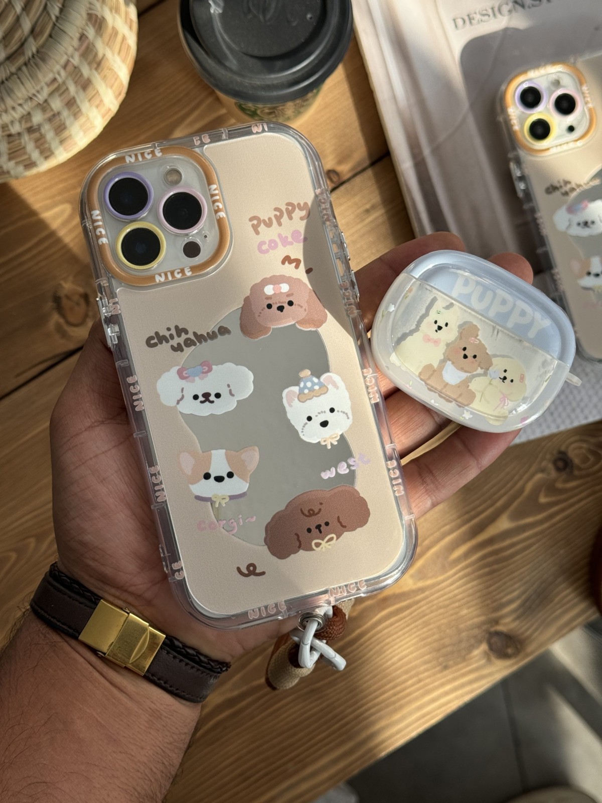 قاب موبایل آیفون سگ پاپی شکلاتی آیینه ای بند کوتاه