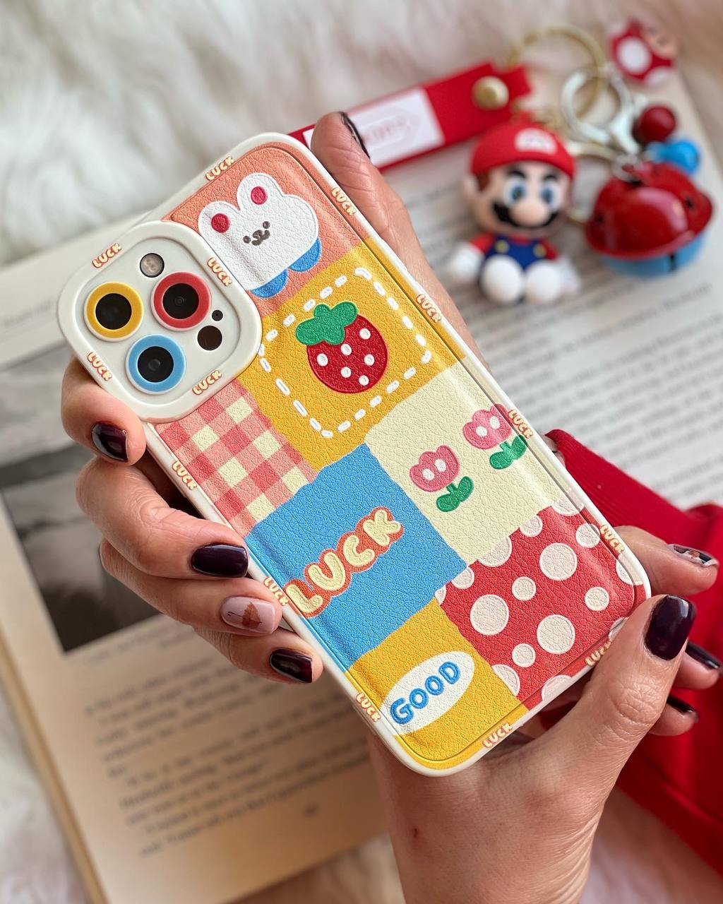 قاب موبایل آیفون خانه انگلیسی توت فرنگی محافظ لنزدار