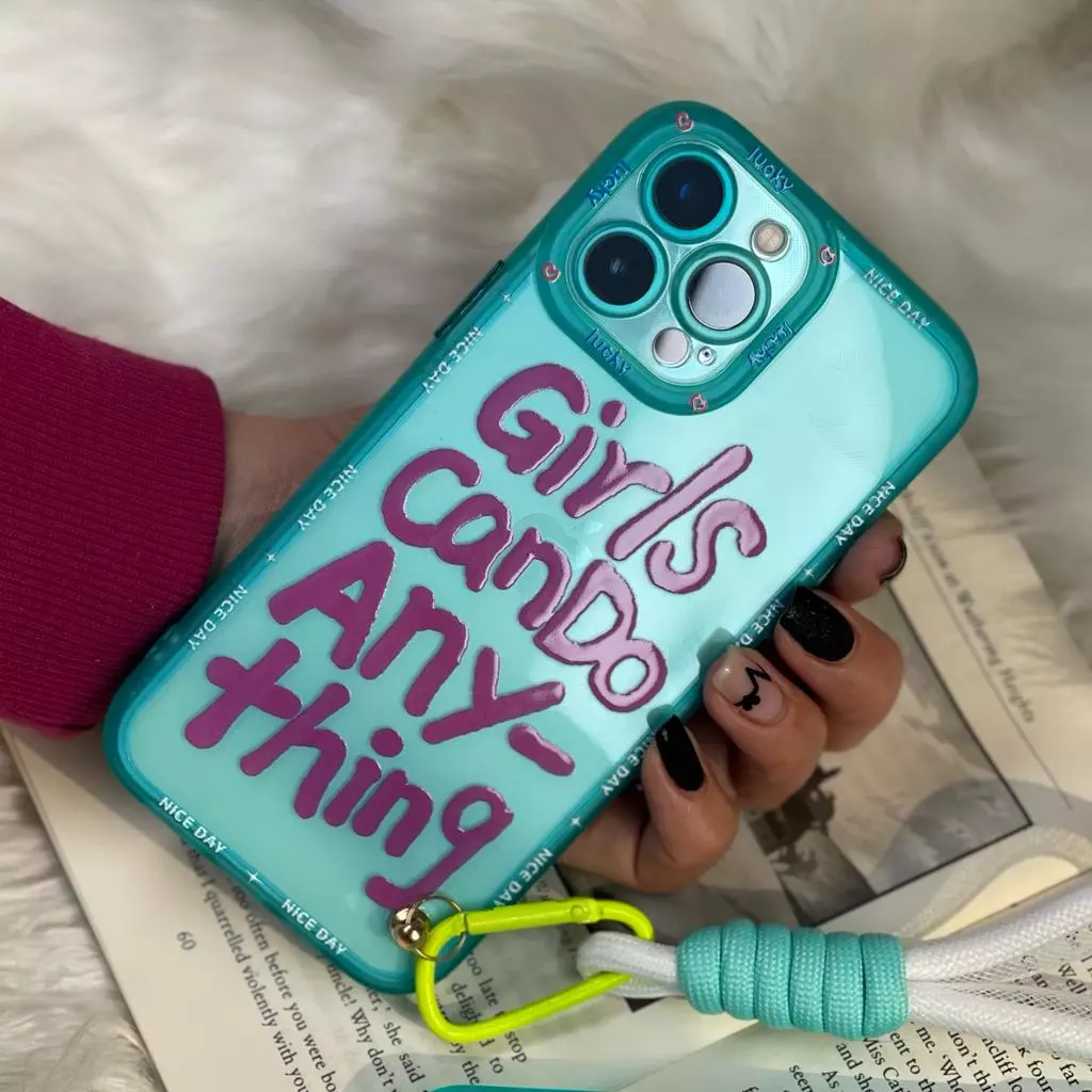قاب موبایل آیفون دخترها پاستیلی سبز + بندست