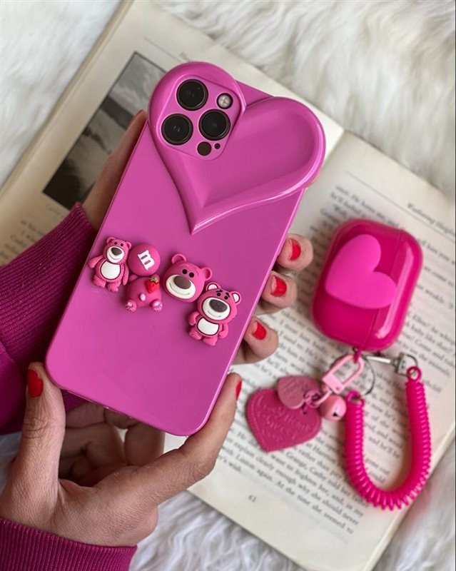 قاب موبایل آیفون لوتسو هوگین خرس یوگی صورتی قلب دار محافظ لنزدار