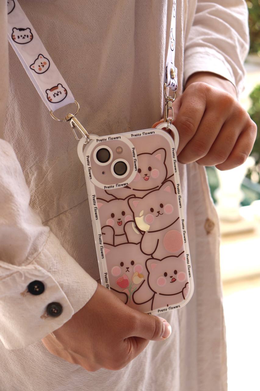 قاب موبایل آیفون خانواده گربه های بازیگوش + بندست