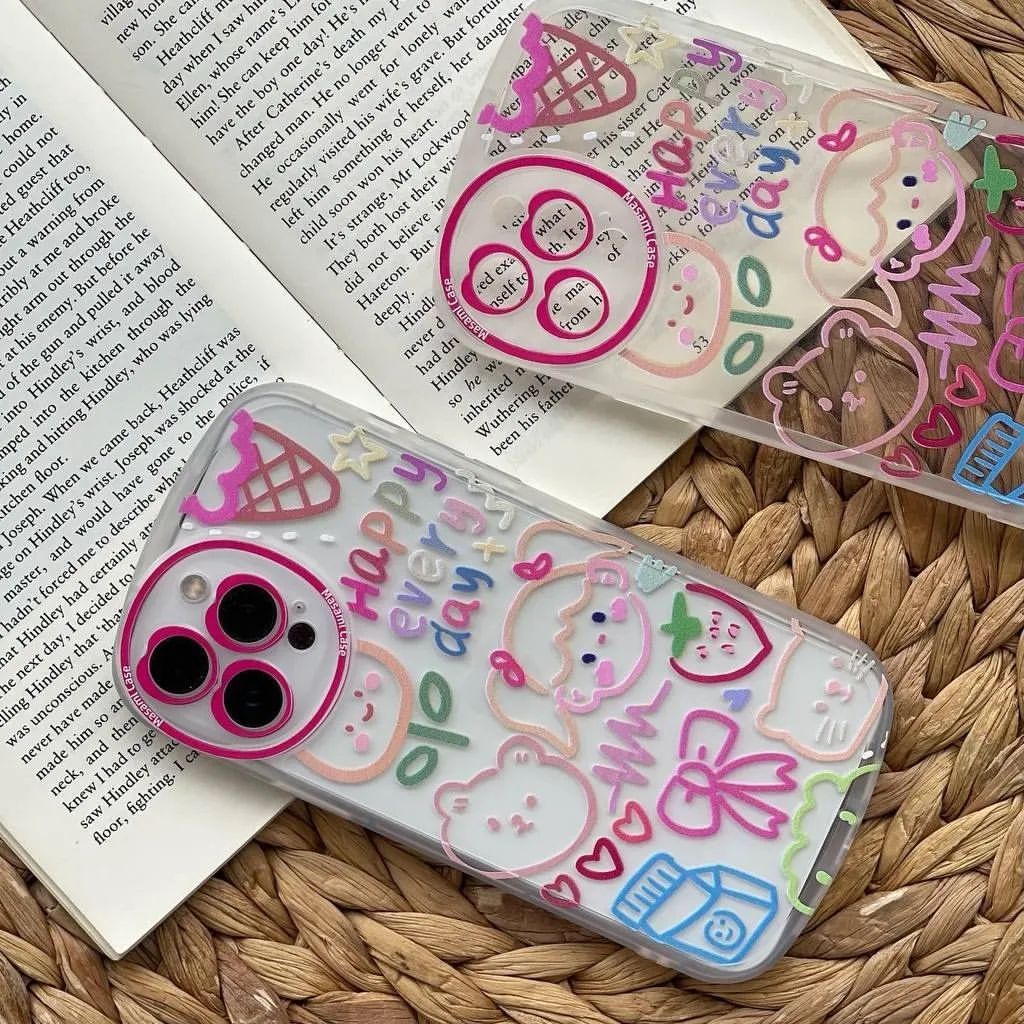 قاب موبایل آیفون دختر نقاشی قلب دوربینی محافظ لنزدار