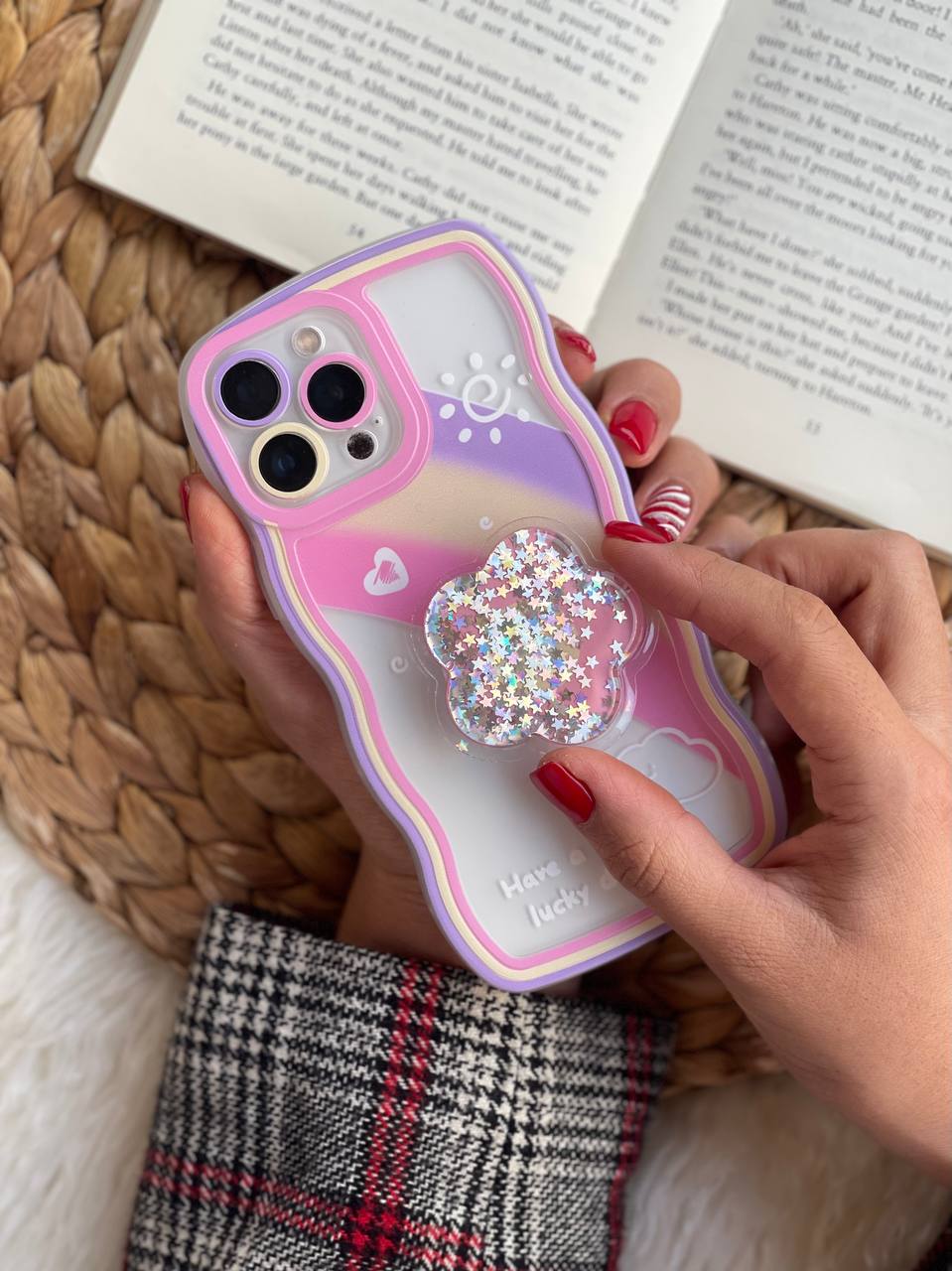 قاب موبایل آیفون ماه و ستاره و رنگین کمان خرسی + پاپ سوکت ستاره متحرک