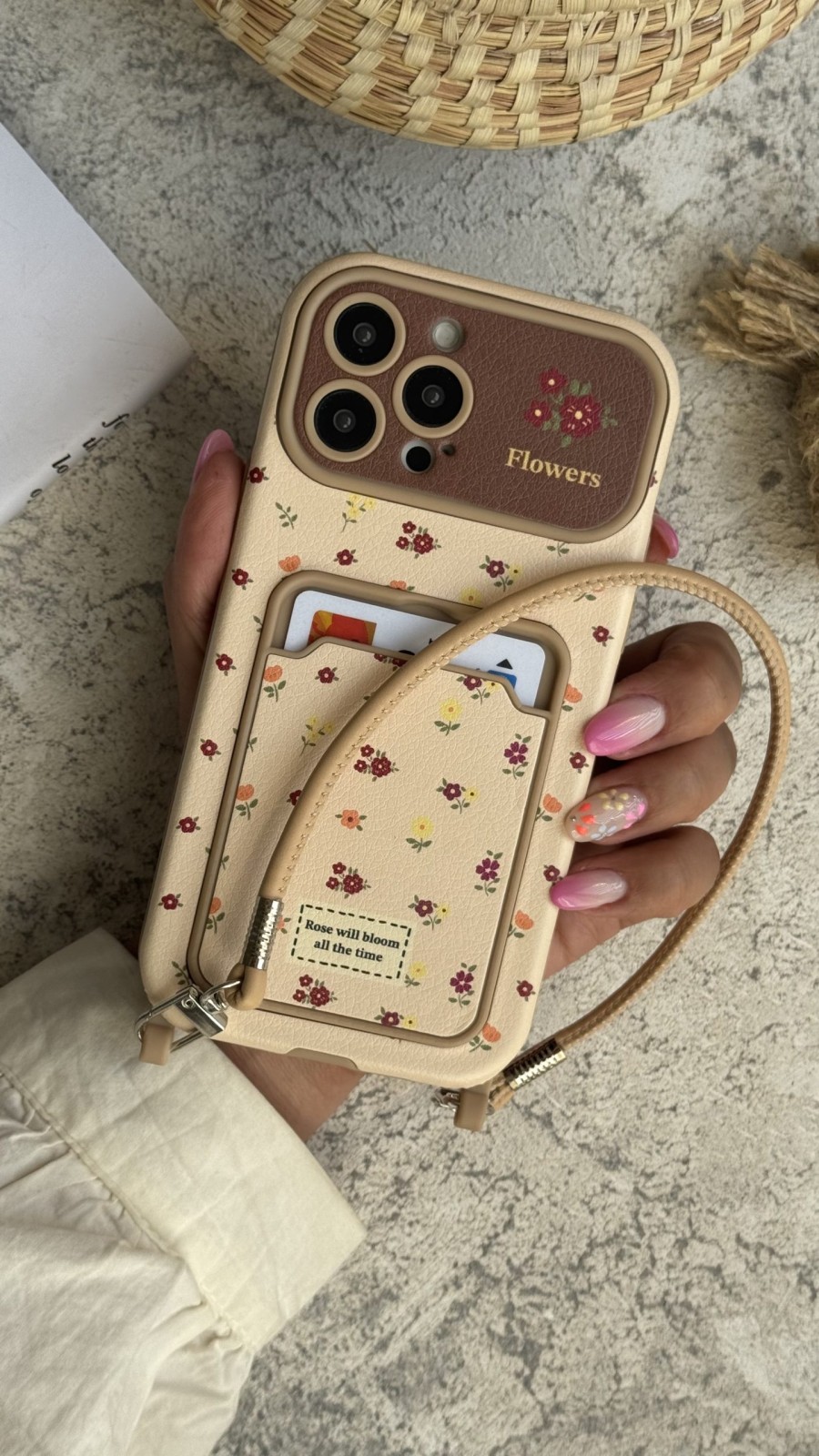 قاب موبایل گل رز فیوره جاکارتی + بندست