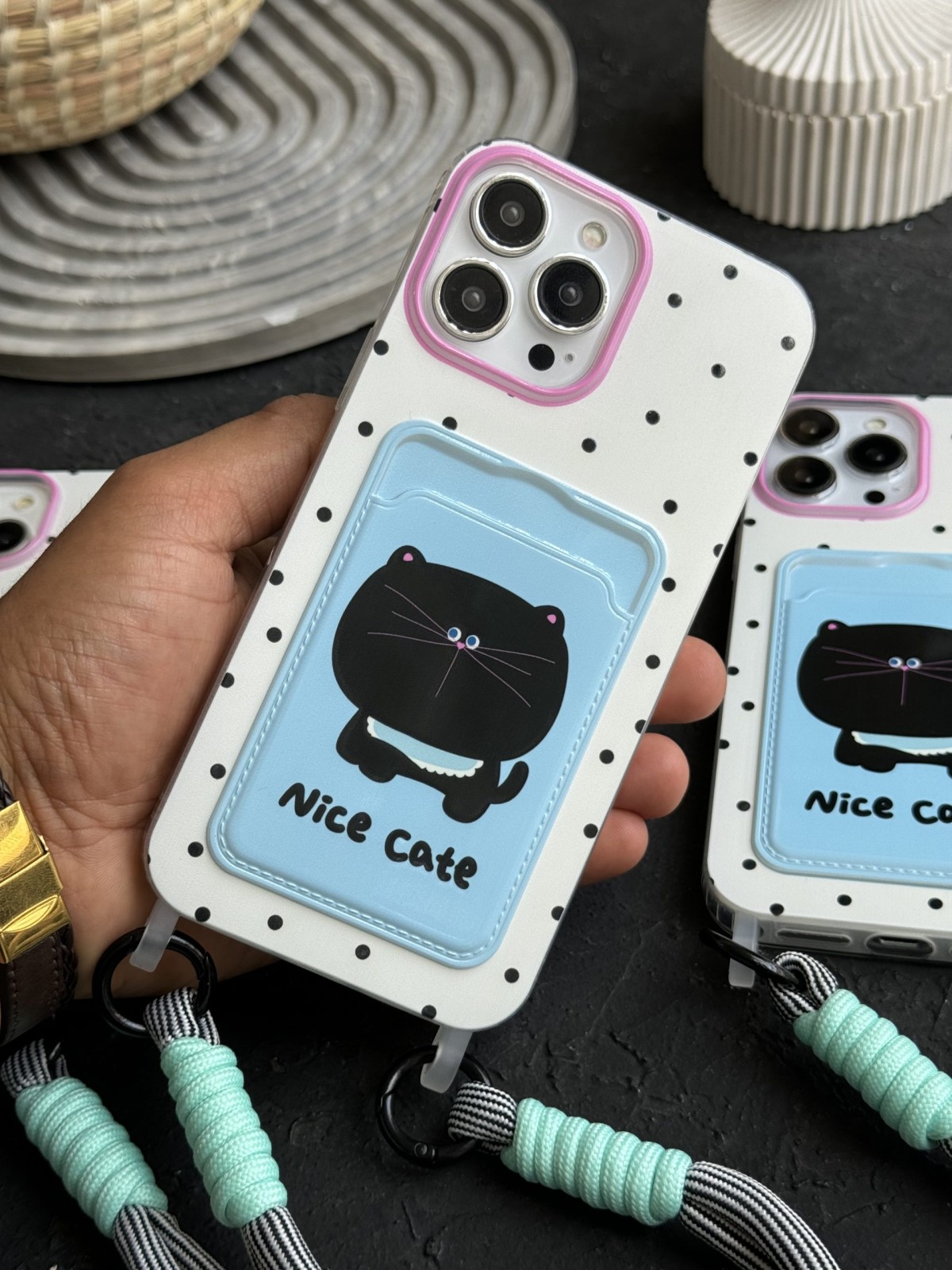 قاب موبایل آیفون گربه نایس کت جاکارتی دار بندی