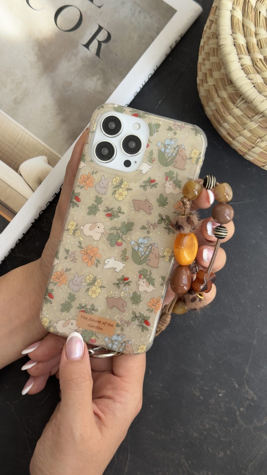 قاب موبایل آیفون خرگوش باغ جادویی + بندست مخملی