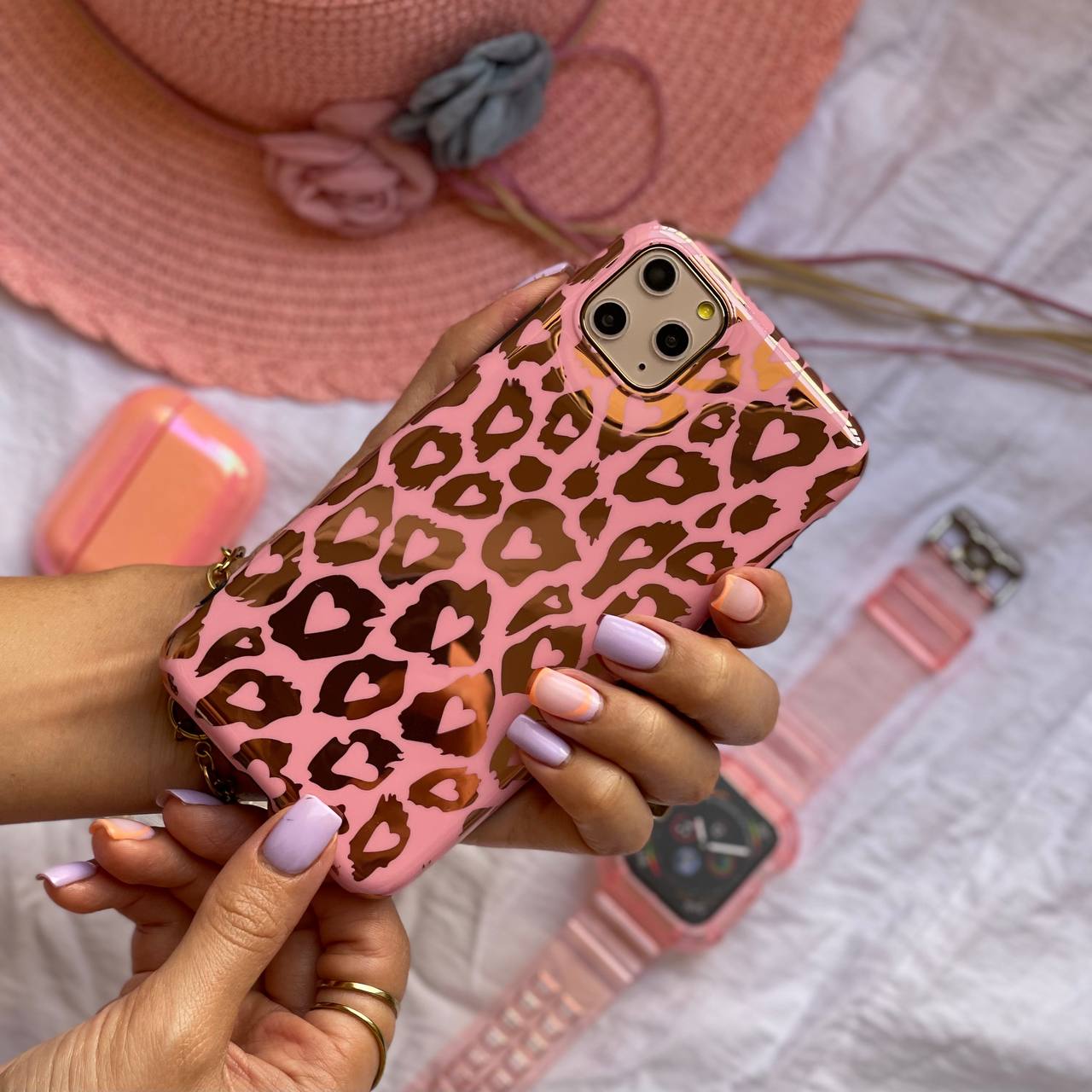 قاب موبایل آیفون پلنگی آینه ای صورتی نقره ای