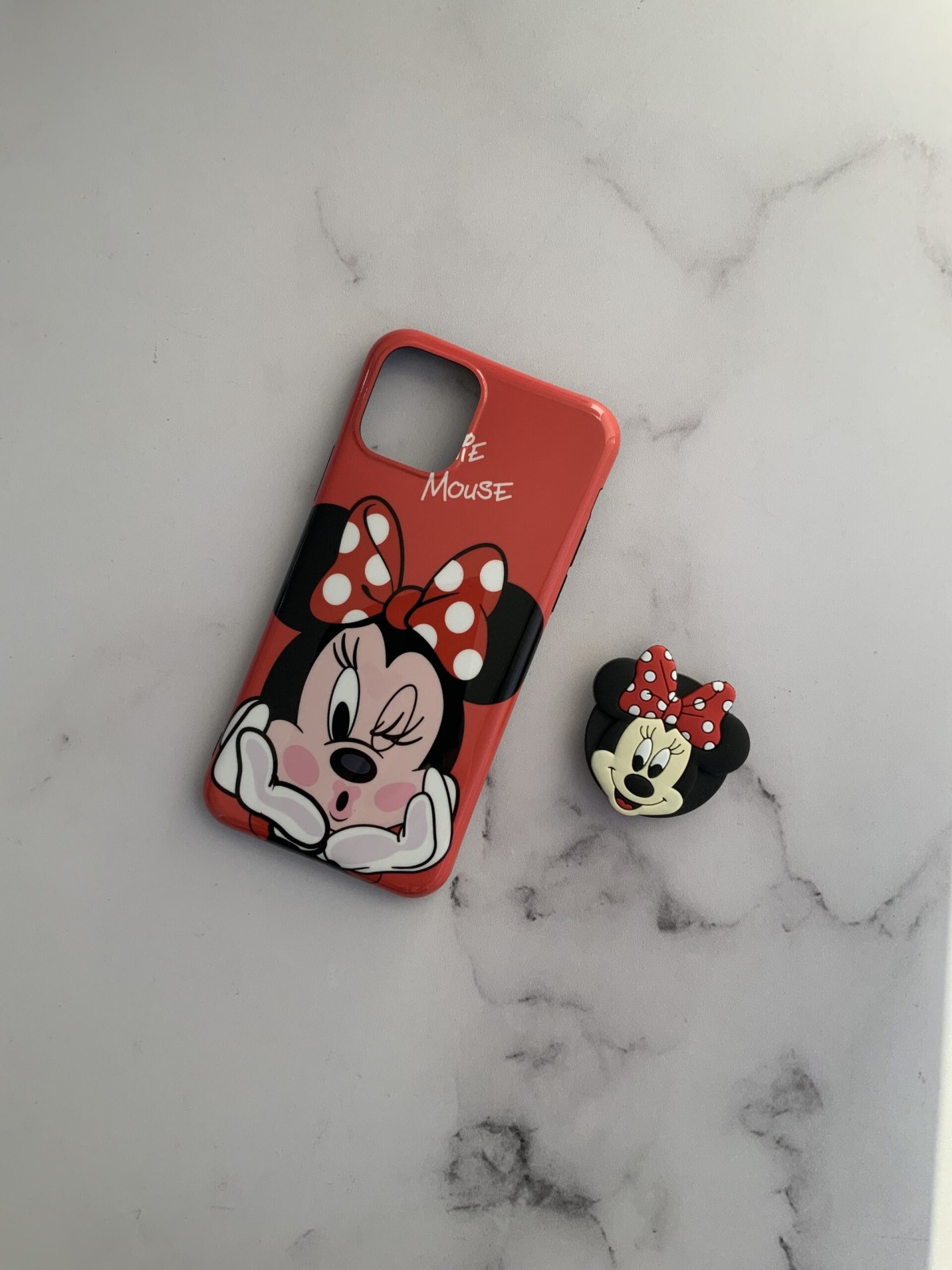 قاب موبایل آیفون میکی مینی دختر قرمز + پاپ سوکت