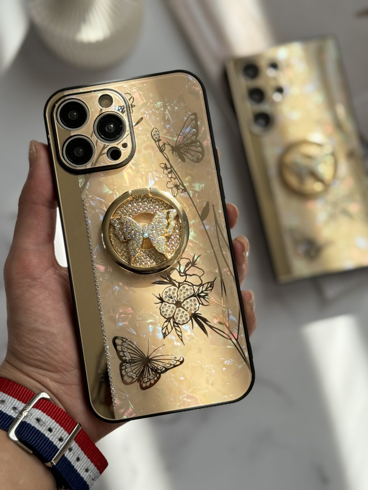 قاب موبایل سامسونگ پروانه نگین دار سواروسکی استندشو