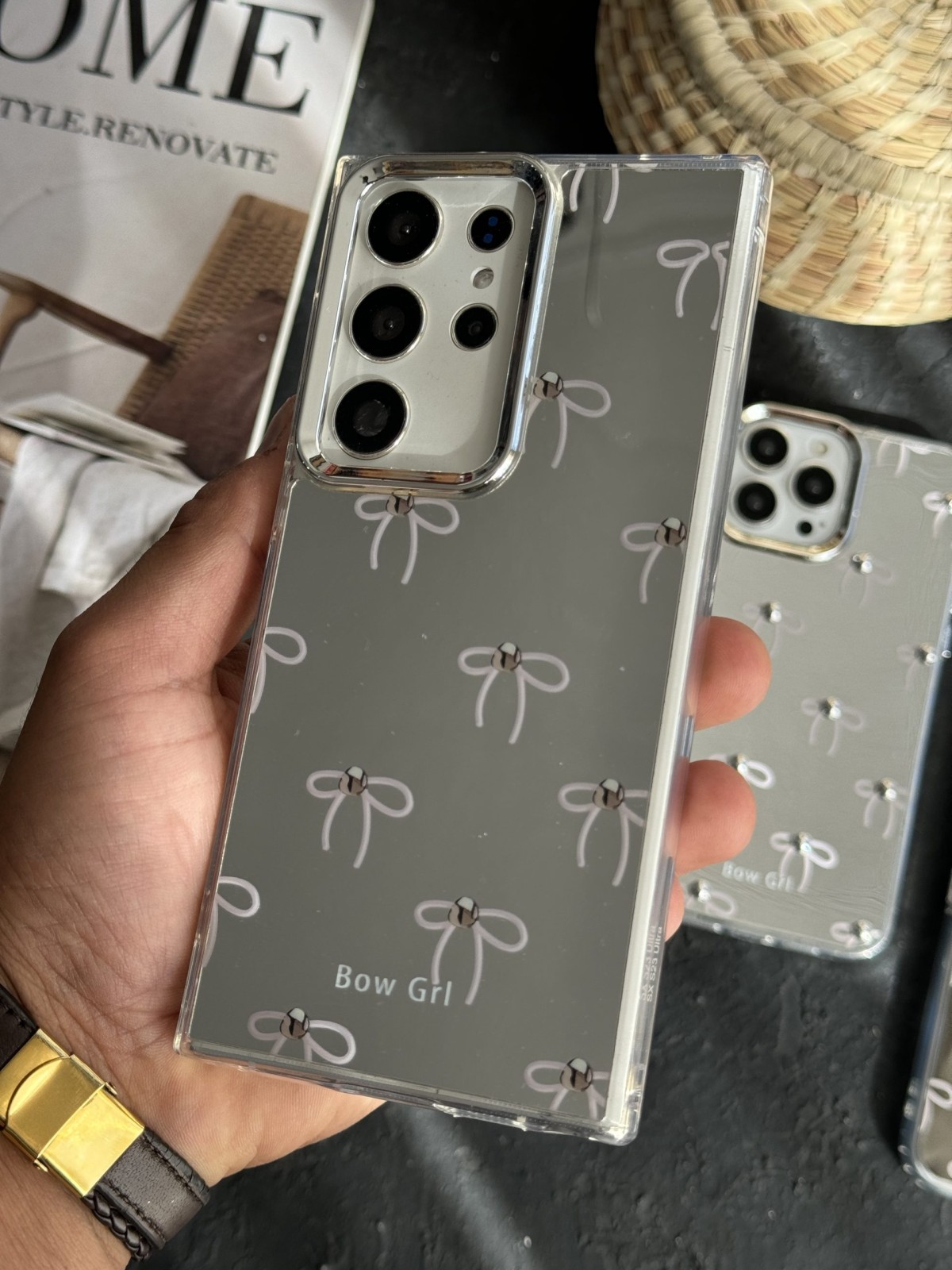 قاب موبایل سامسونگ پاپیون آیینه ای نگین دار