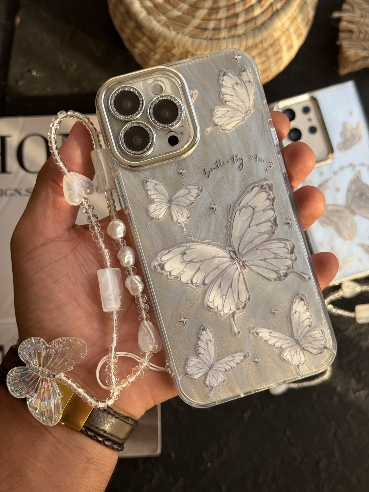 قاب موبایل ( آیفون – سامسونگ ) پاپیون ریز برجسته بیرنگ