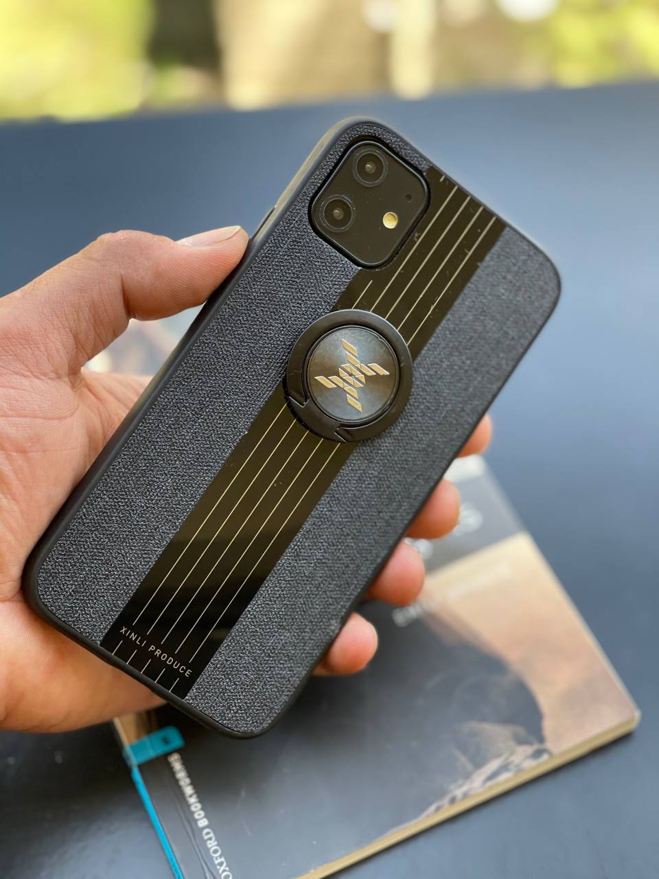 قاب موبایل سامسونگ پارچه و گلس حلقه دار مشکی