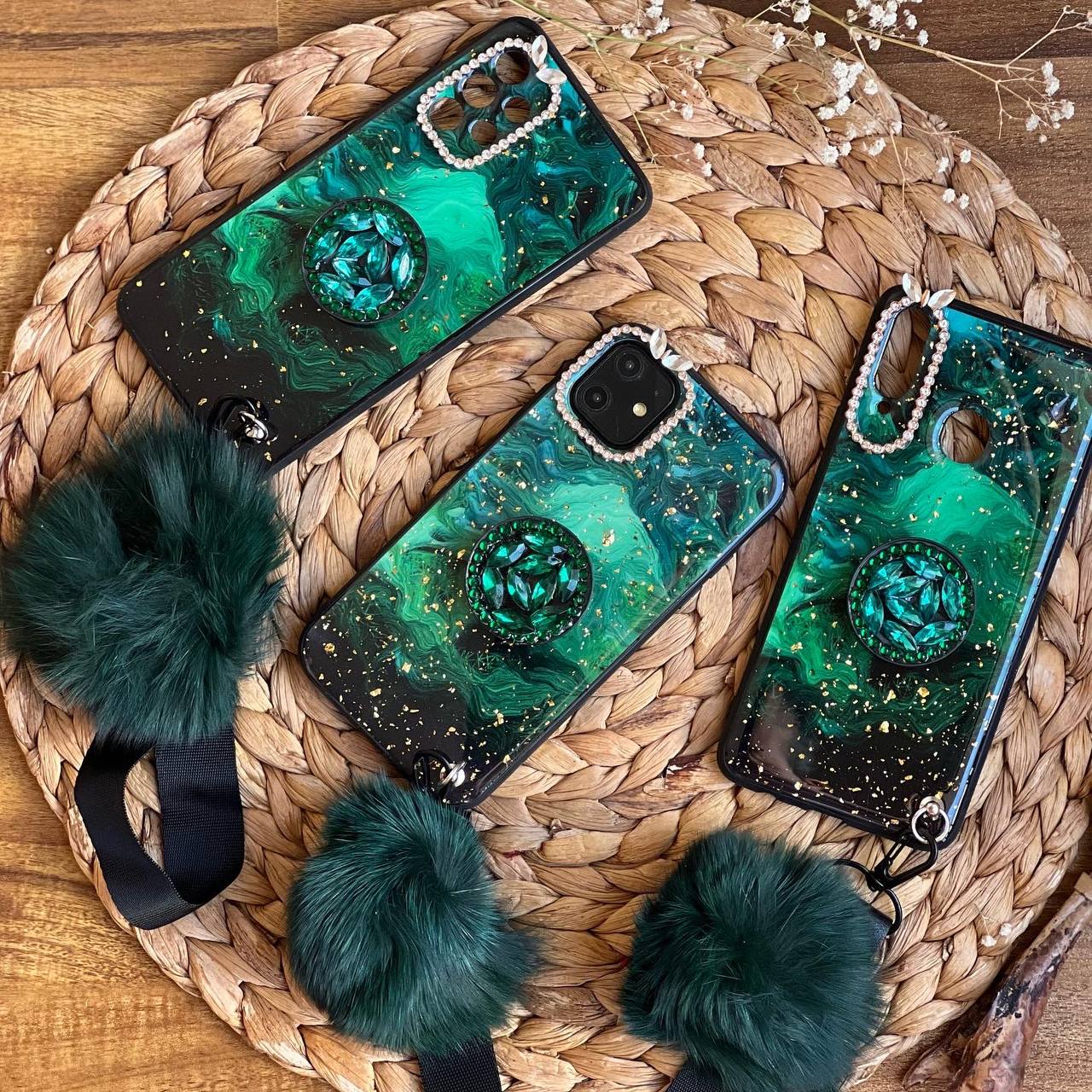 قاب موبایل شیائومی ماربل پام پام یشمی نگین دار + پام پام + پاپ سوکت