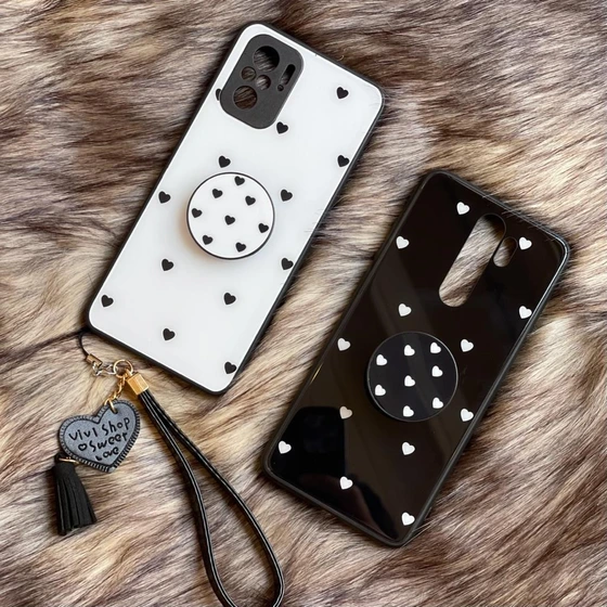 قاب موبایل شیائومی قلب ریز پشت گلس + بندست ( مشکی | سفید )