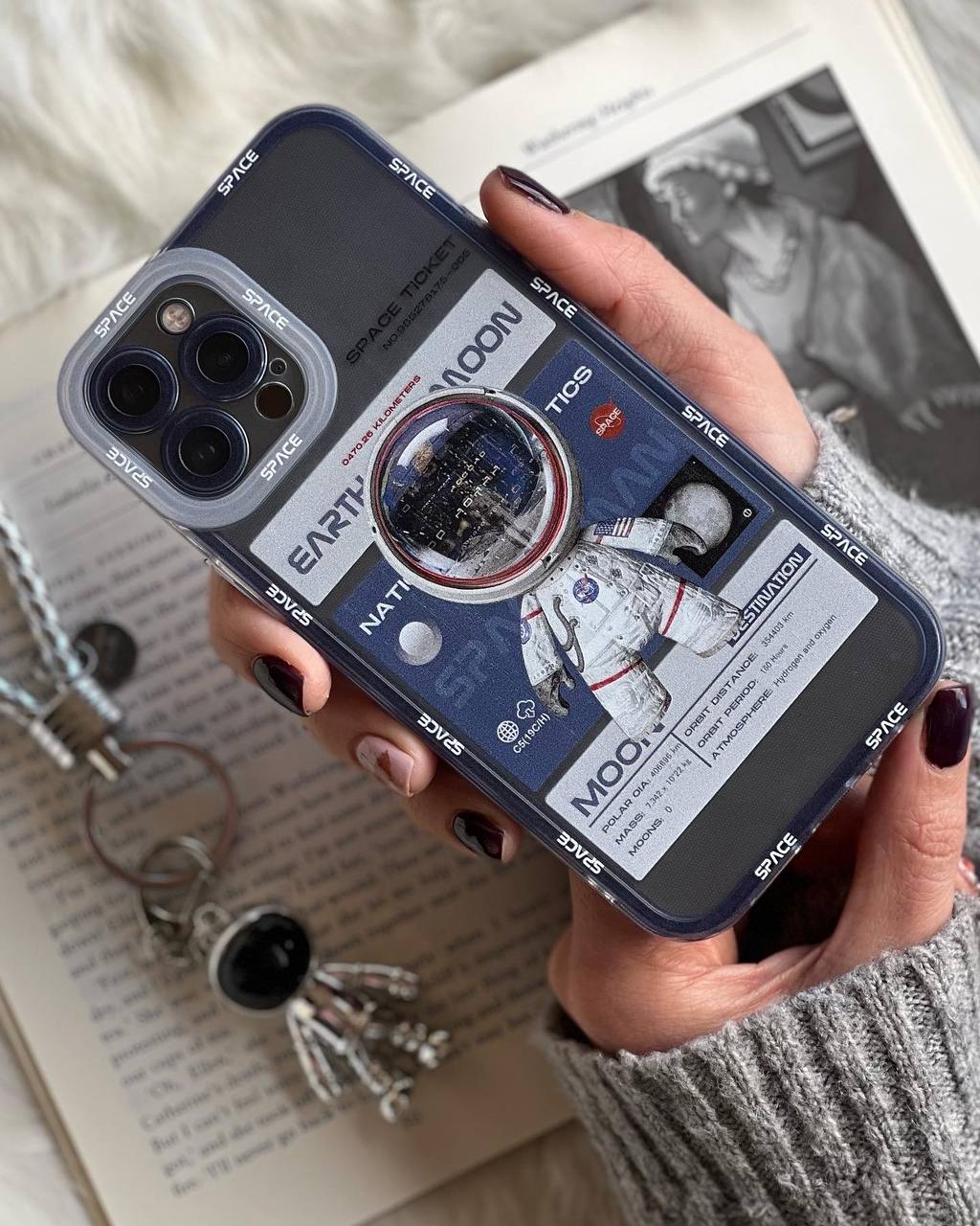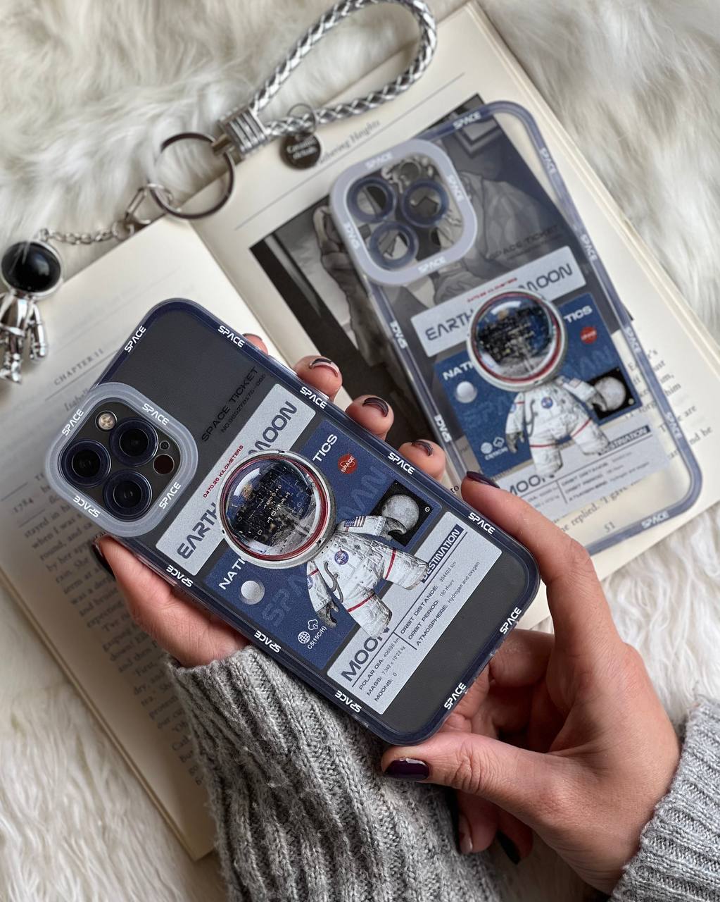 قاب موبایل آیفون آرمسترانگ کره ماه فضایی آبی محافظ لنزدار