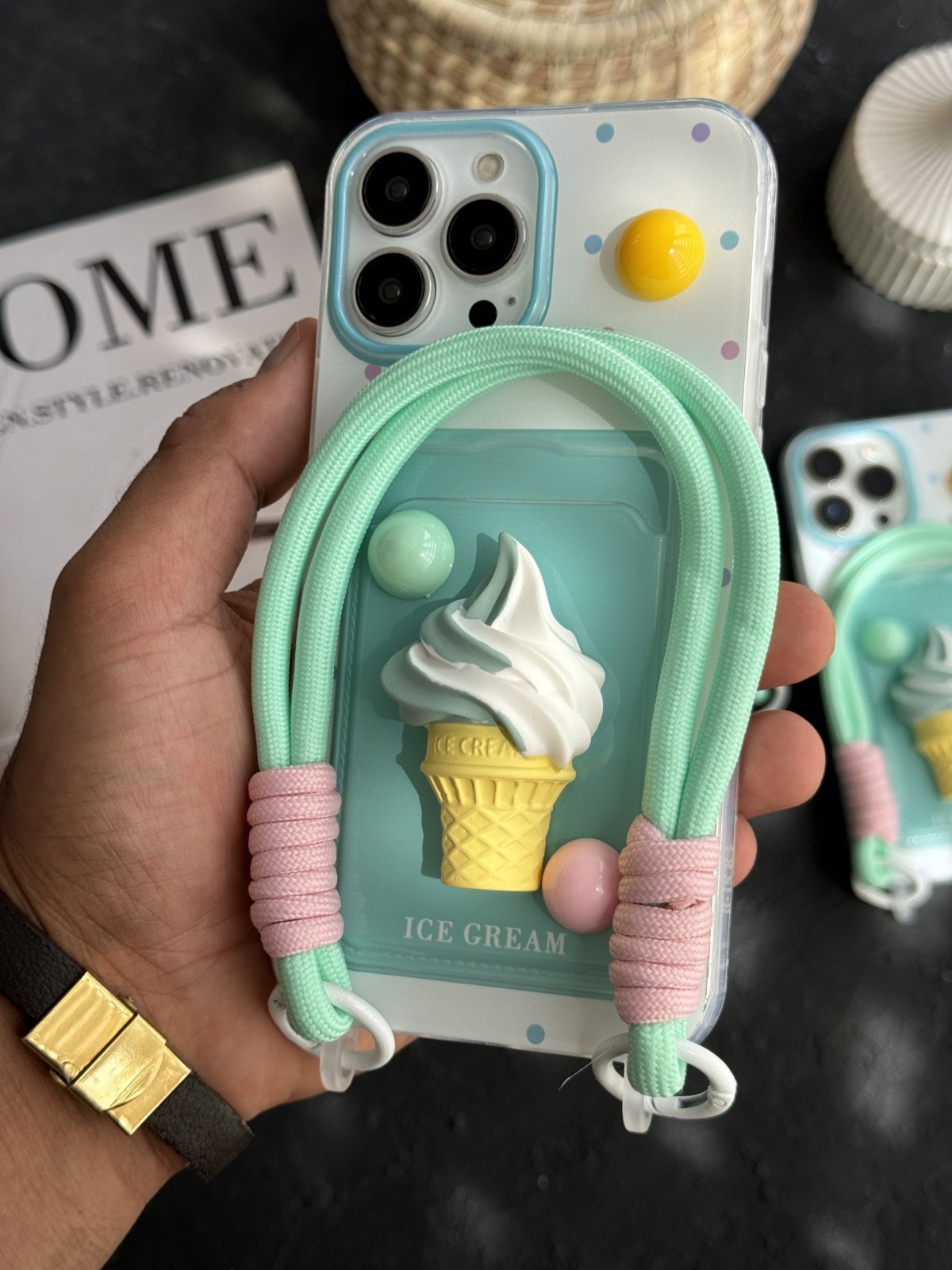 قاب موبایل آیفون بستنی قیفی دو رنگ جاکارتی بند ست