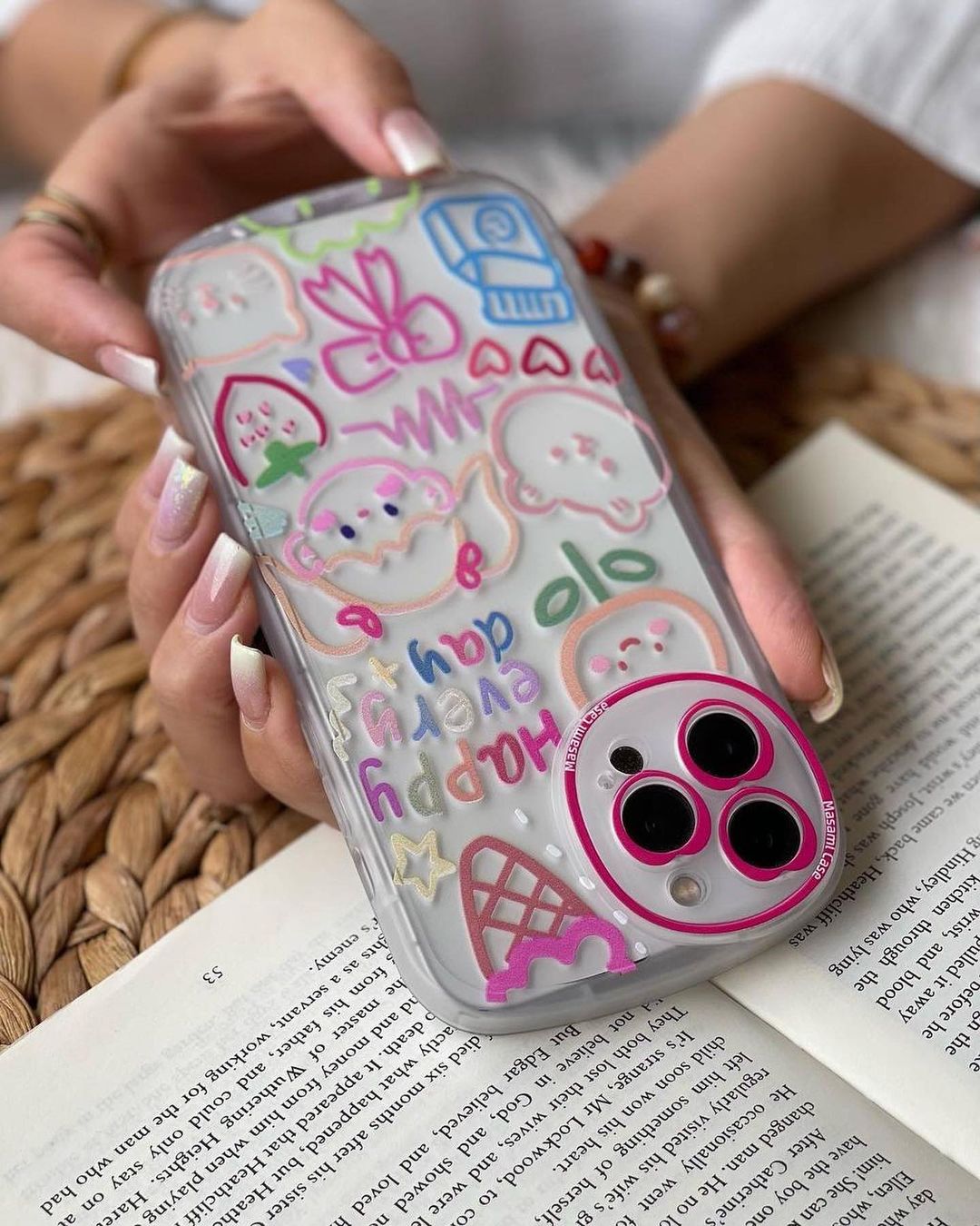 قاب موبایل آیفون دختر نقاشی قلب دوربینی محافظ لنزدار