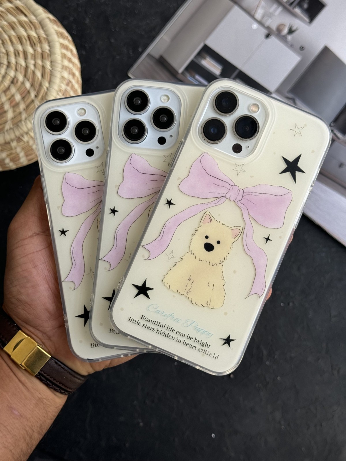 قاب موبایل آیفون سگ پاپی ستاره پاپیون صورتی
