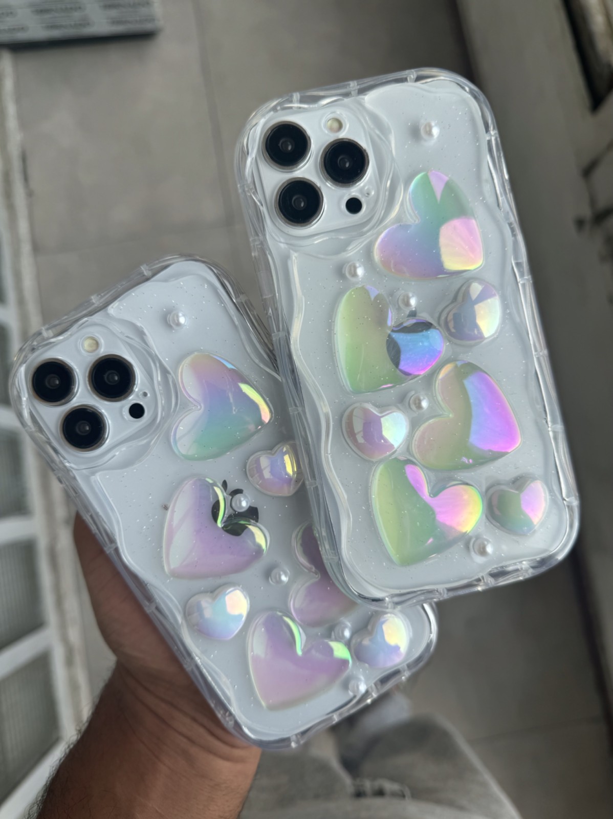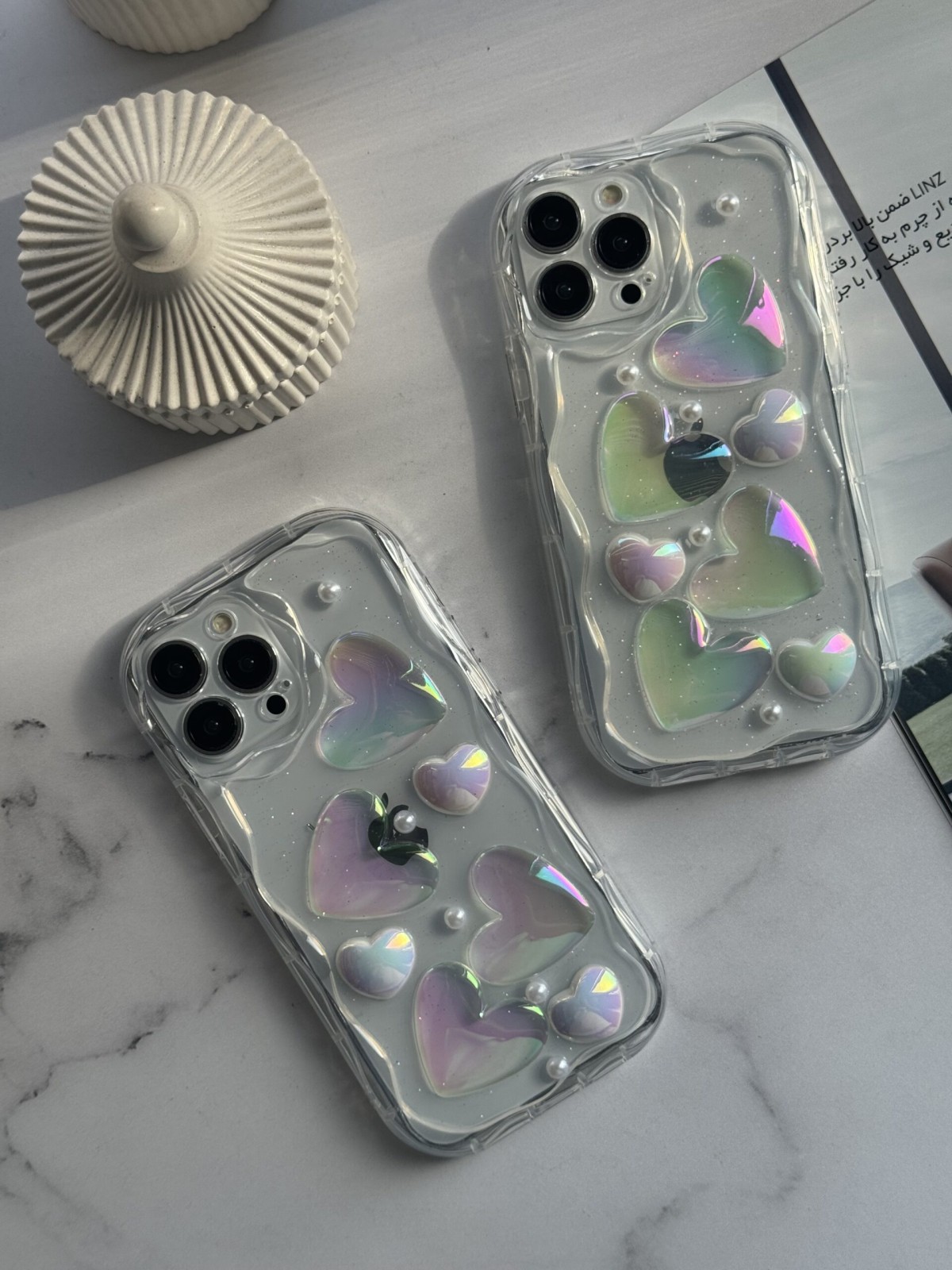 قاب موبایل آیفون قلب برجسته هفت رنگ پشت بیرنگ