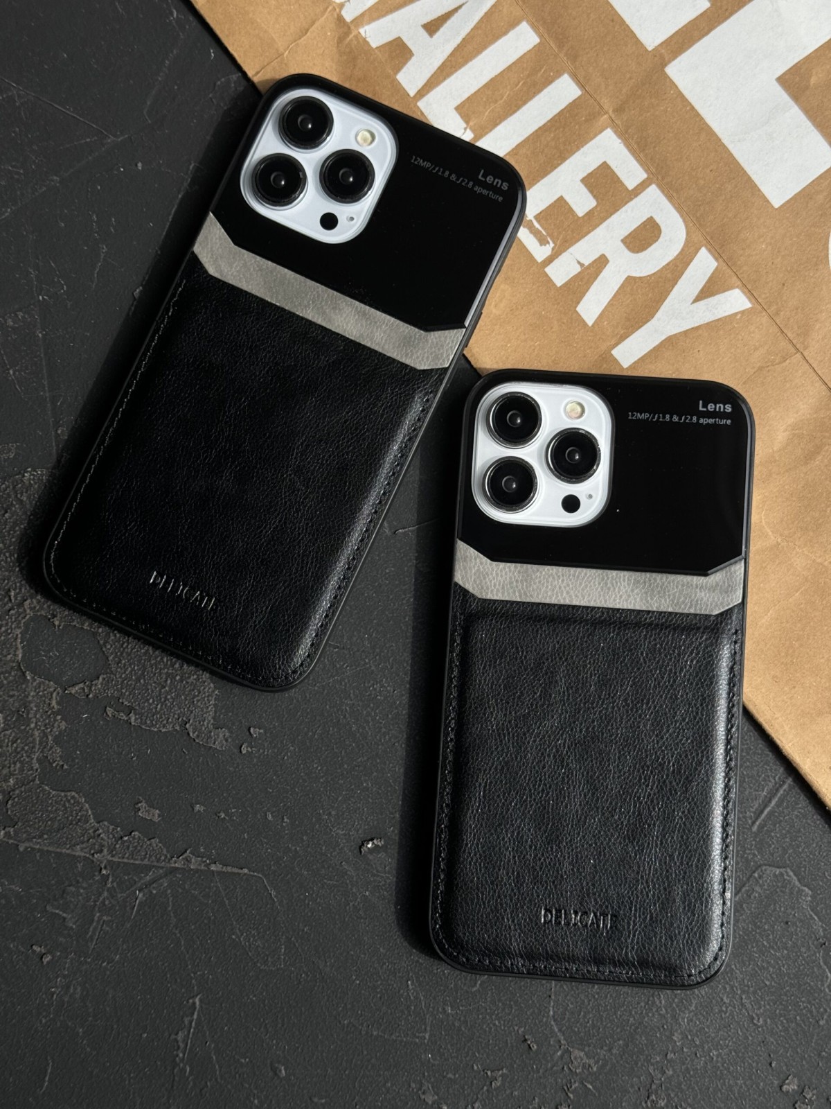 قاب موبایل آیفون لنز چرمی و شیشه ای