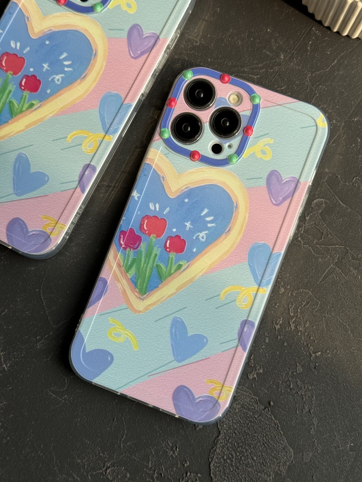 قاب موبایل آیفون نقاشی کودک درون قلبی آبی بنفش محافظ لنزدار ( 3005 )