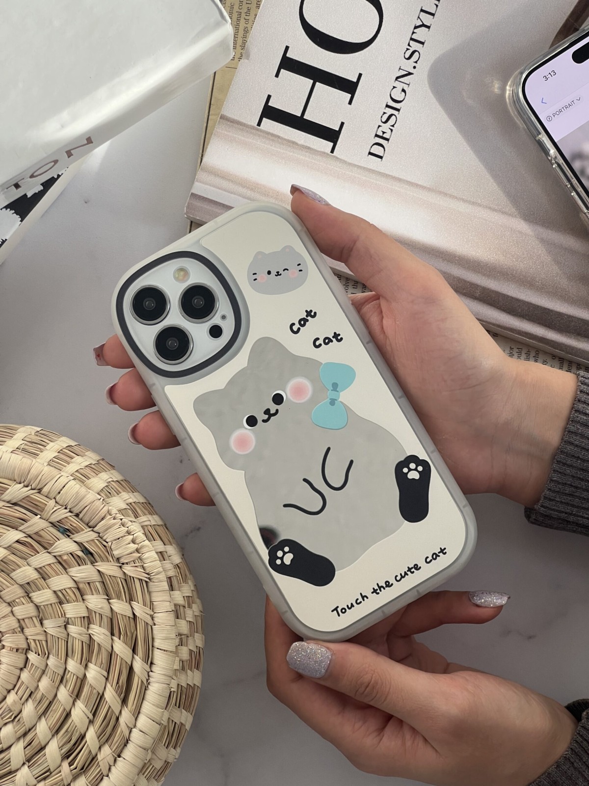 قاب موبایل آیفون کیوت کت گربه خجالتی آینه ای