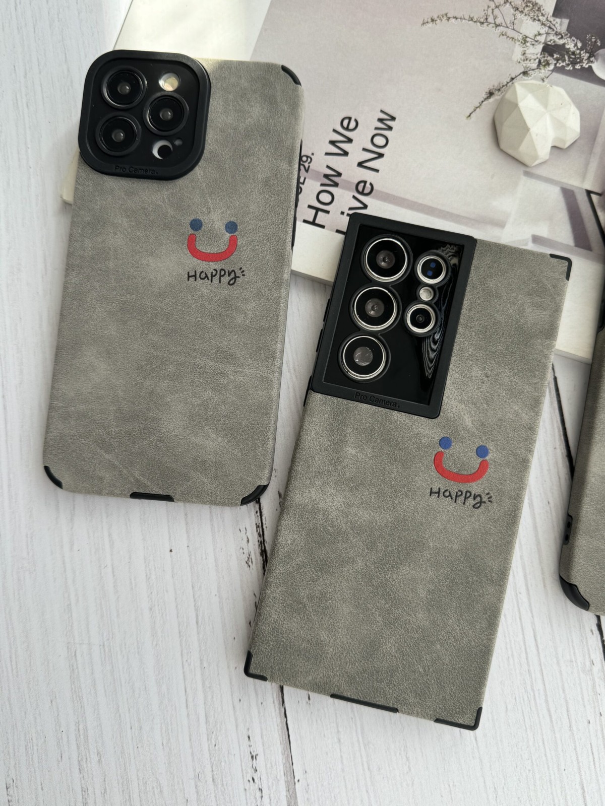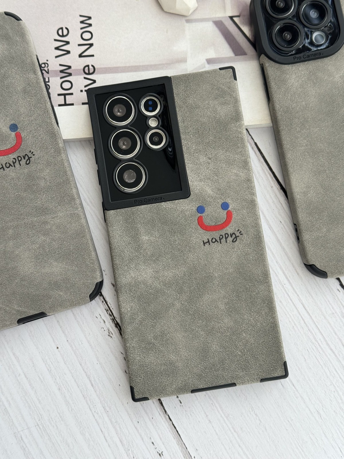 قاب موبایل سامسونگ چرم و جیر طوسی اسمایل محافظ لنزدار