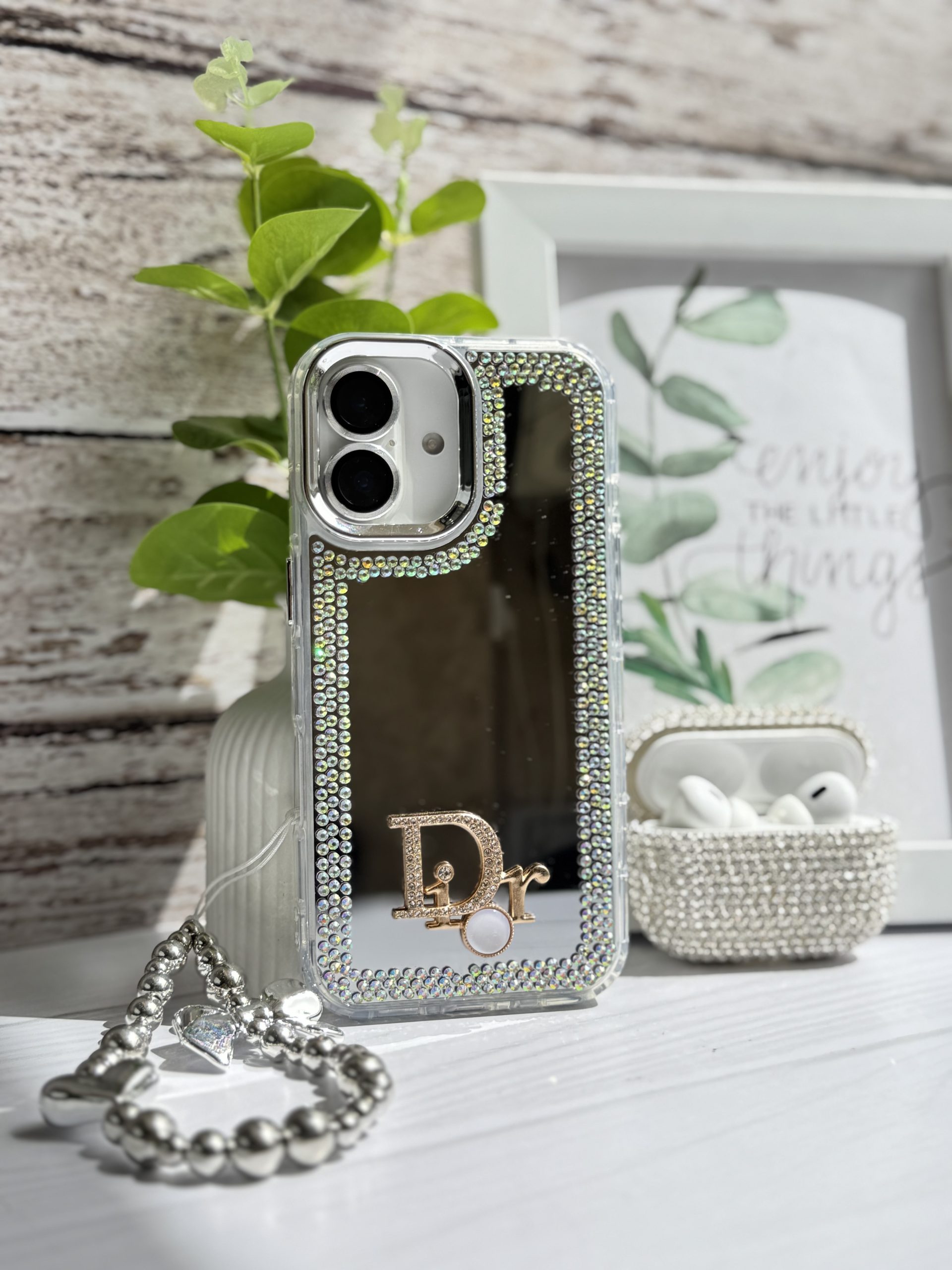 قاب Dior آینه ای دور نگین با آویز قلبی پاپیونی (کدC1989)
