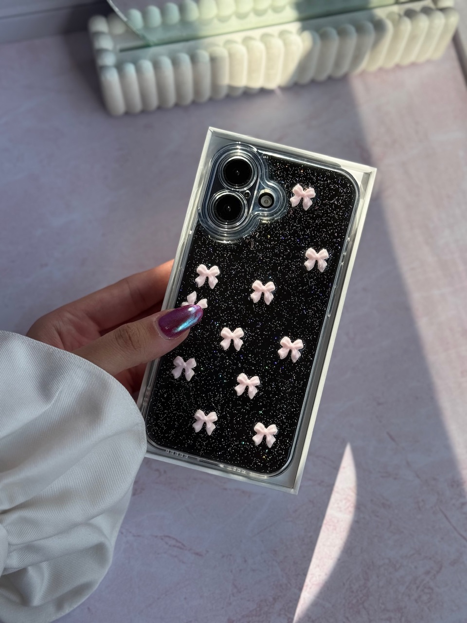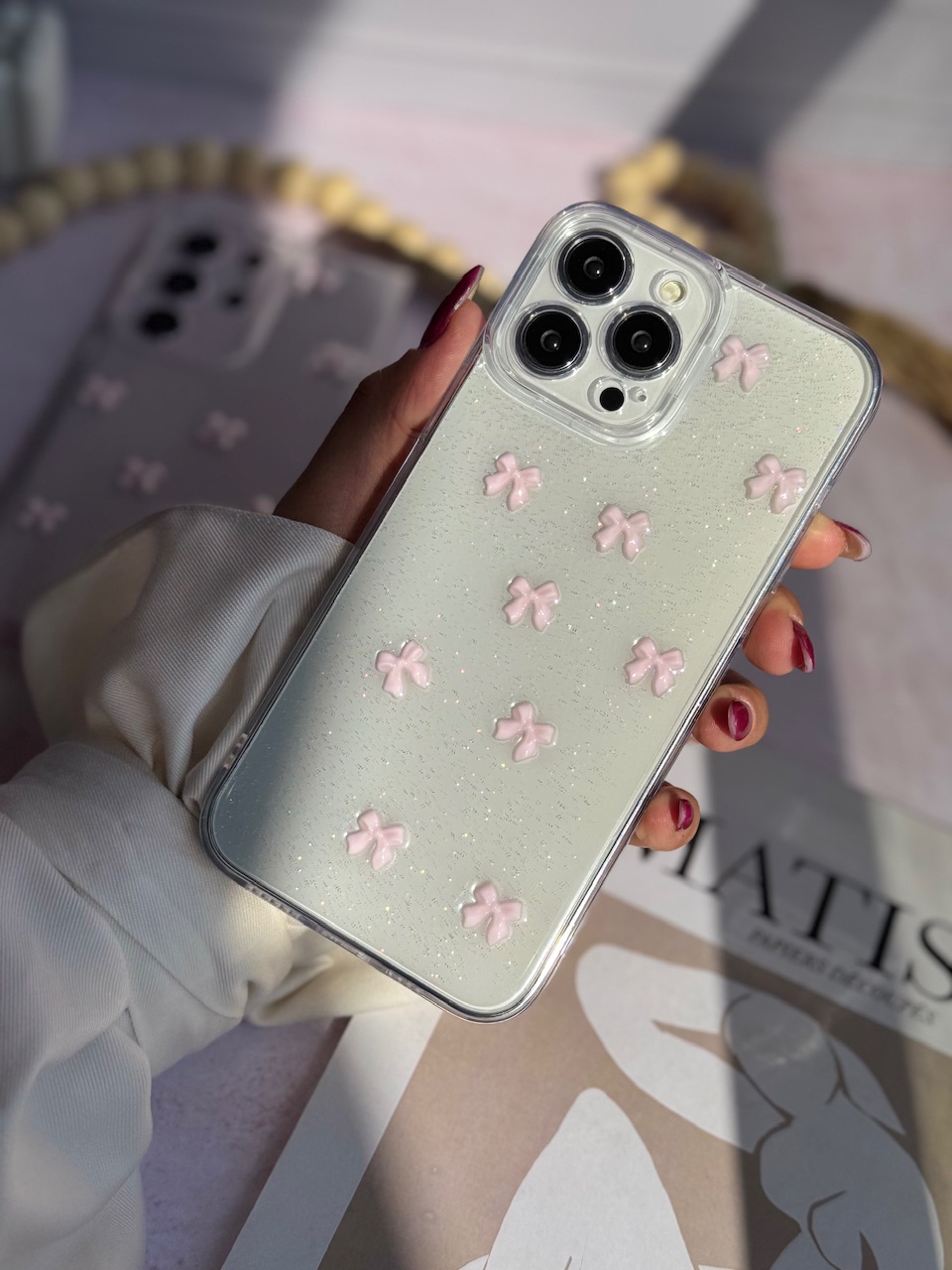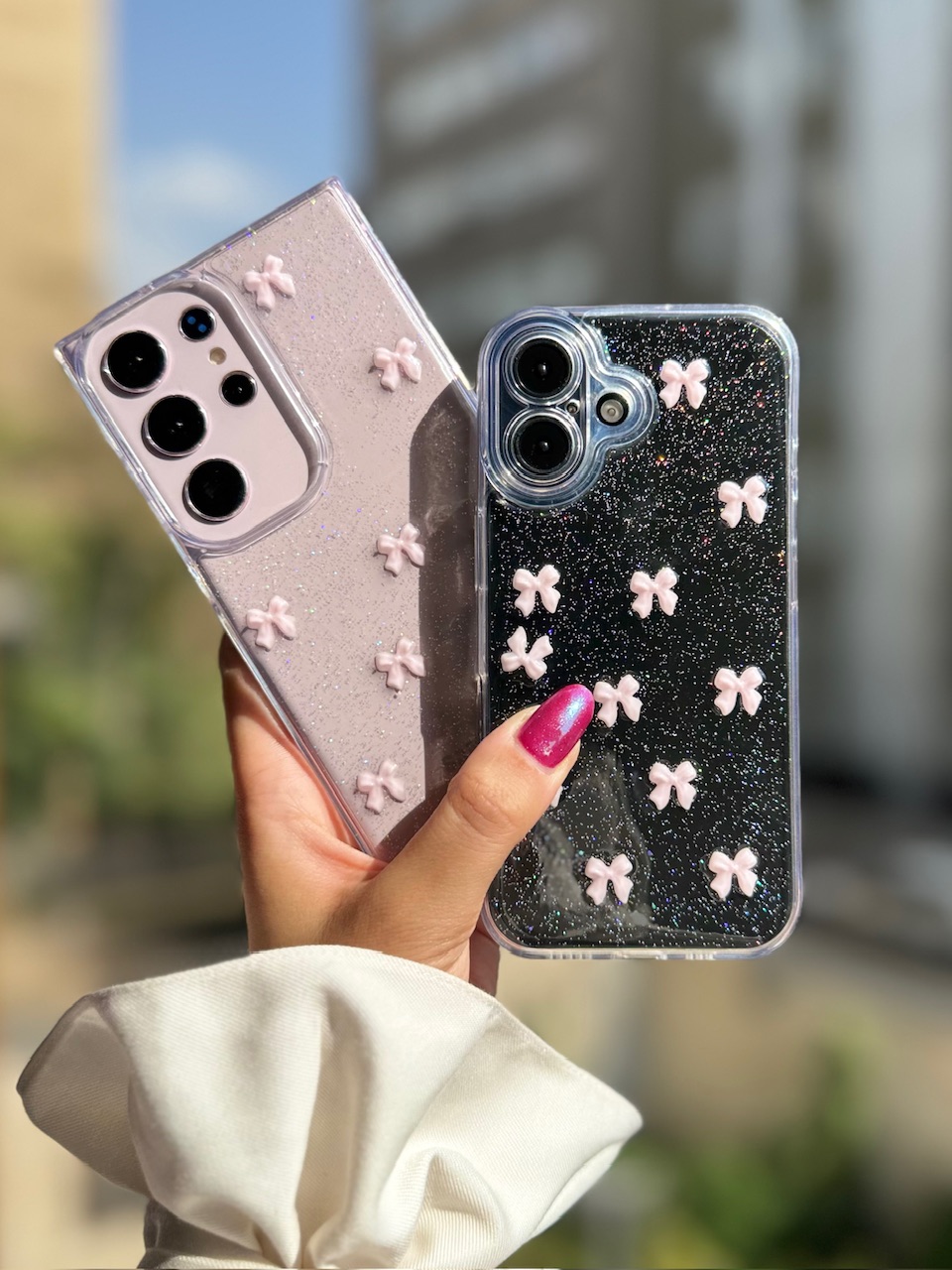 قاب پاپیون صورتی شاین آیفون ، سامسونگ ، شیائومی (کدC2059)