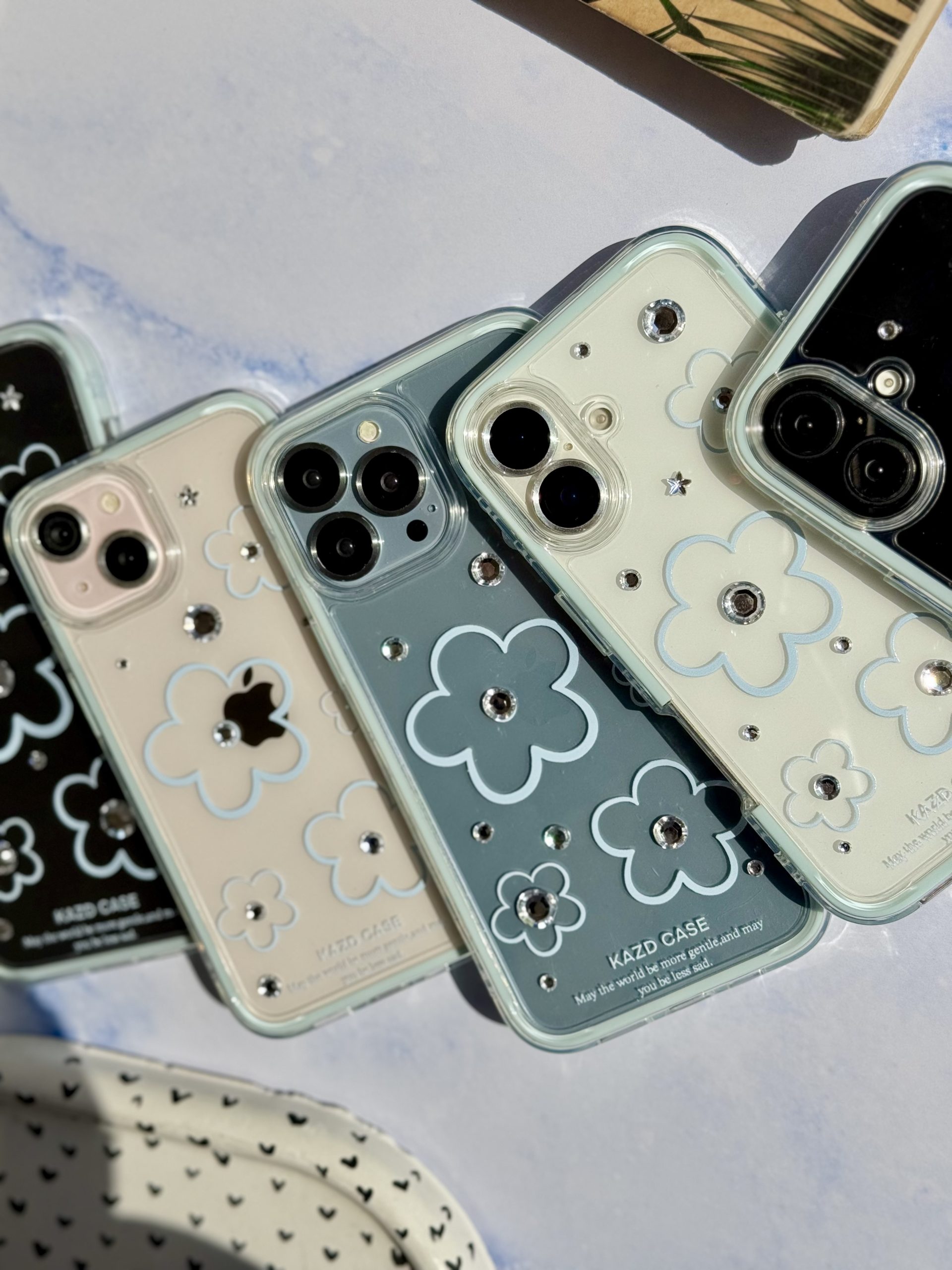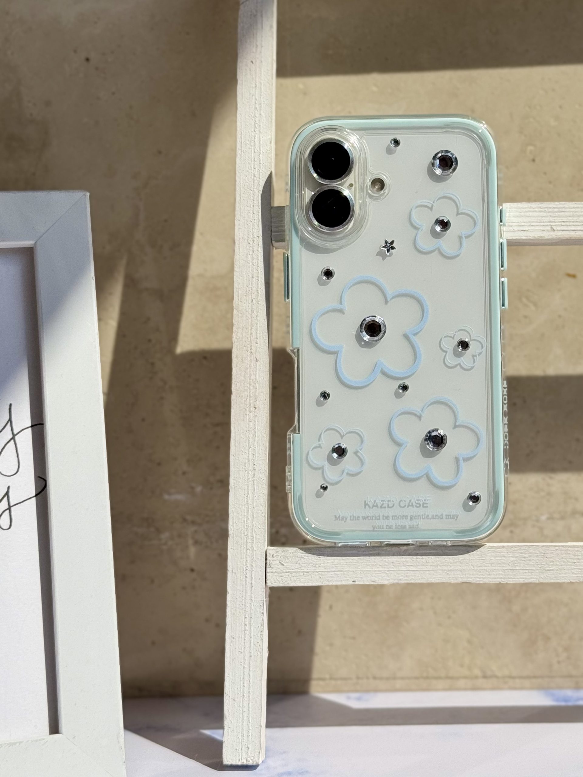 قاب گل آبی نگین دار✨همراه با نگین ⚡️دو لایه 🧱محافظت کامل از قاب🔪دور تا دور چاپ🖨️