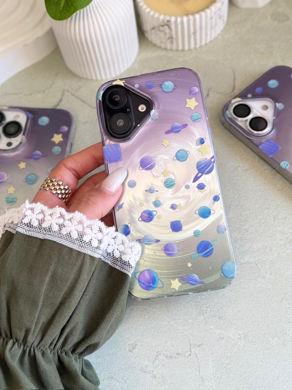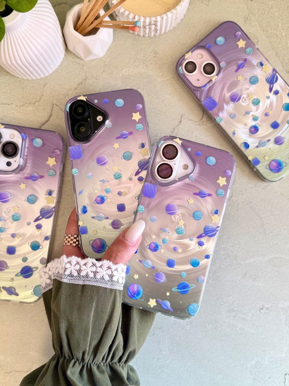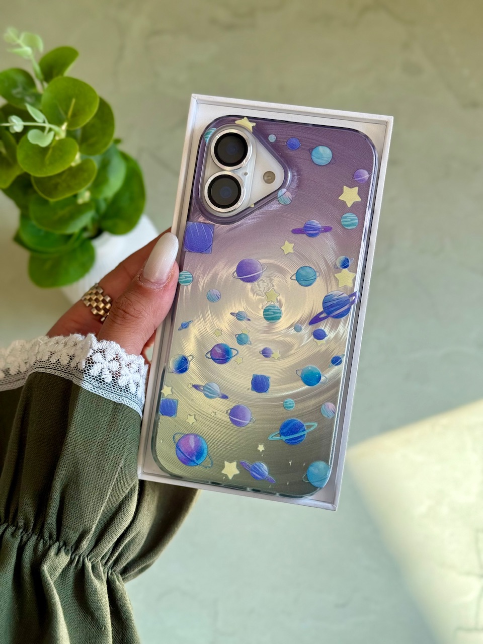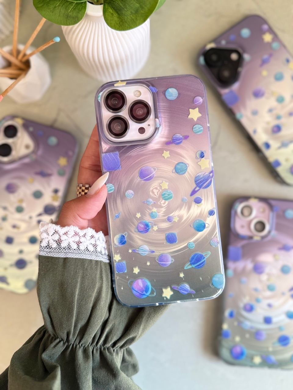 قاب آیفون / قابگوشی / قاب زحل / قاب سیاره / منظومهٔ شمسی یا سامانهٔ خورشیدی[۶] سامانهای گرانشی است که دربرگیرندهٔ یک ستاره به نام خورشید و شماری اجرام آسمانی دیگر است که در مدارهایی مستقیم یا غیرمستقیم پیرامون آن ستاره میگردند.منظومهٔ شمسی دارای هشت سیاره (تیر یا عطارد، ناهید یا زهره، زمین، بهرام یا مریخ، هرمز یا مشتری، کیوان یا زحل، اورانوس و نپتون) و پنج سیارهٔ کوتولهٔ تاکنون شناختهشده (سرس، پلوتون، هاومیا، ماکیماکی و اریس) است. چهار سیارهٔ نخست، سیارههای درونی یا زمینسان هستند و بیشتر از سنگ ساخته شدهاند. از چهار سیارهٔ دیگر یا سیارههای بیرونی، مشتری و زحل غولهای گازی هستند و بیشتر از گازهای هیدروژن و هلیوم ساخته شدهاند و اورانوس و نپتون غولهای یخی هستند. افزونبر این اجرام، منظومهٔ شمسی دربرگیرندهٔ اجرام دیگری از جمله قمرها، سیارکها، شهابوارهها، شهابها، شهابسنگها و دنبالهدارهاست. سامانهٔ خورشیدی همچنین دارای مناطق خاصی از جمله کمربند سیارکها، کمربند کویپر و دیسک پراکنده (سامانه خورشیدی) است.