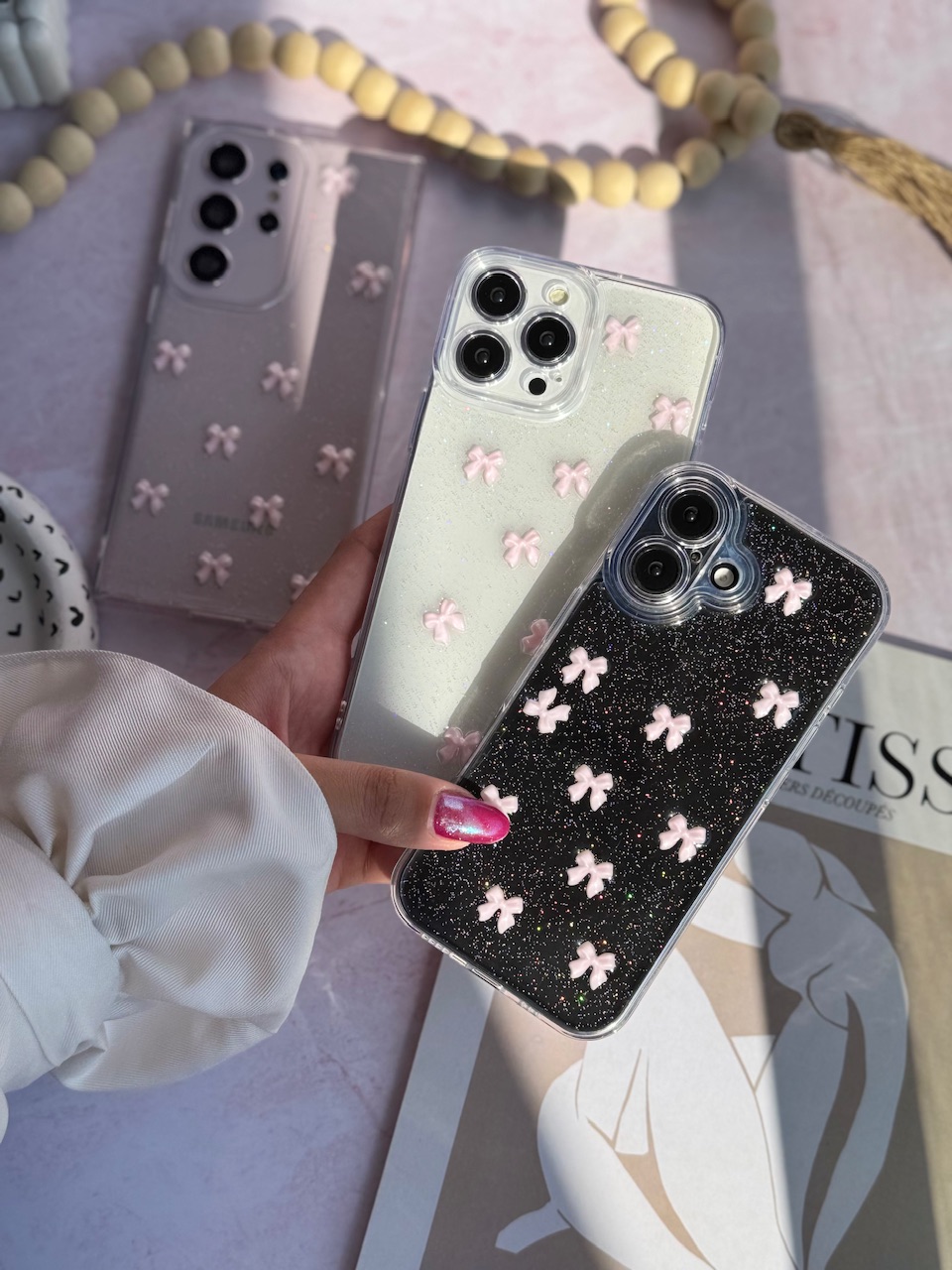 قاب پاپیون صورتی شاین آیفون ، سامسونگ ، شیائومی (کدC2059)