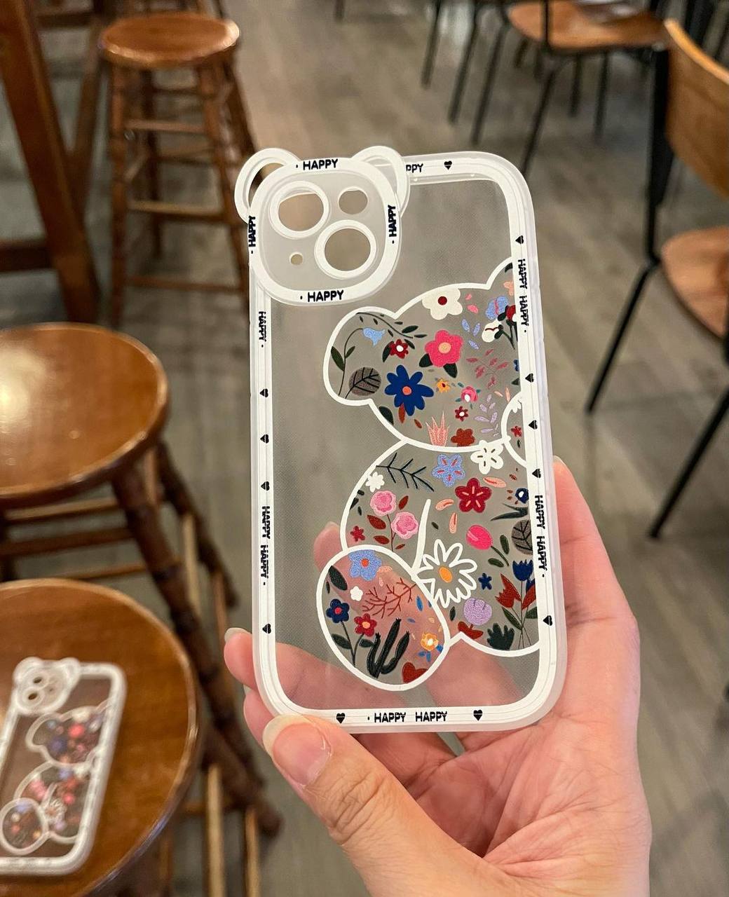 قاب خرس گلدار سفید با ایرپاد ست (کدc1020)