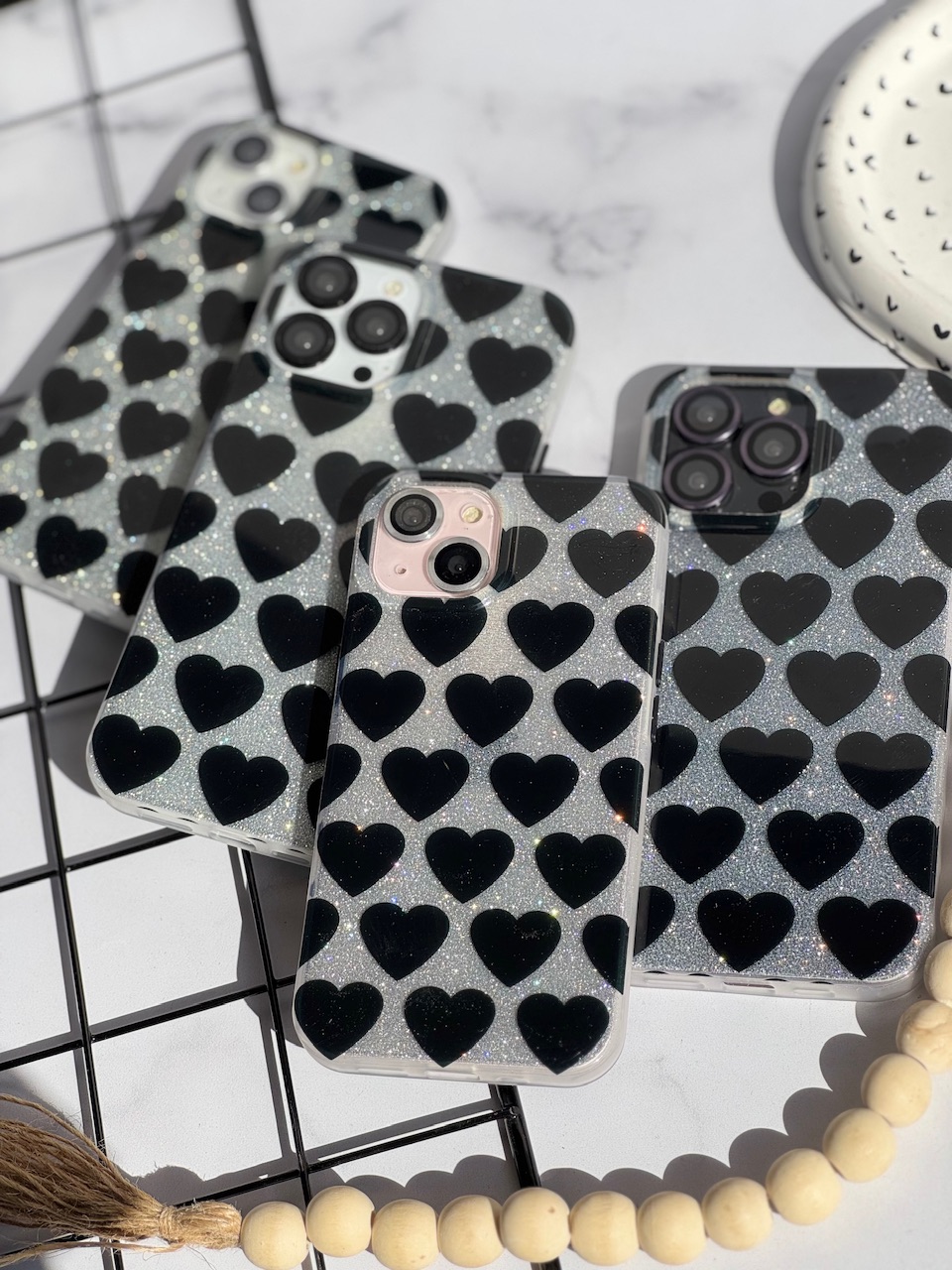 قاب شاینی قلب آینه ای با محافظ لنز رینگی نگینی (کدC1889)
