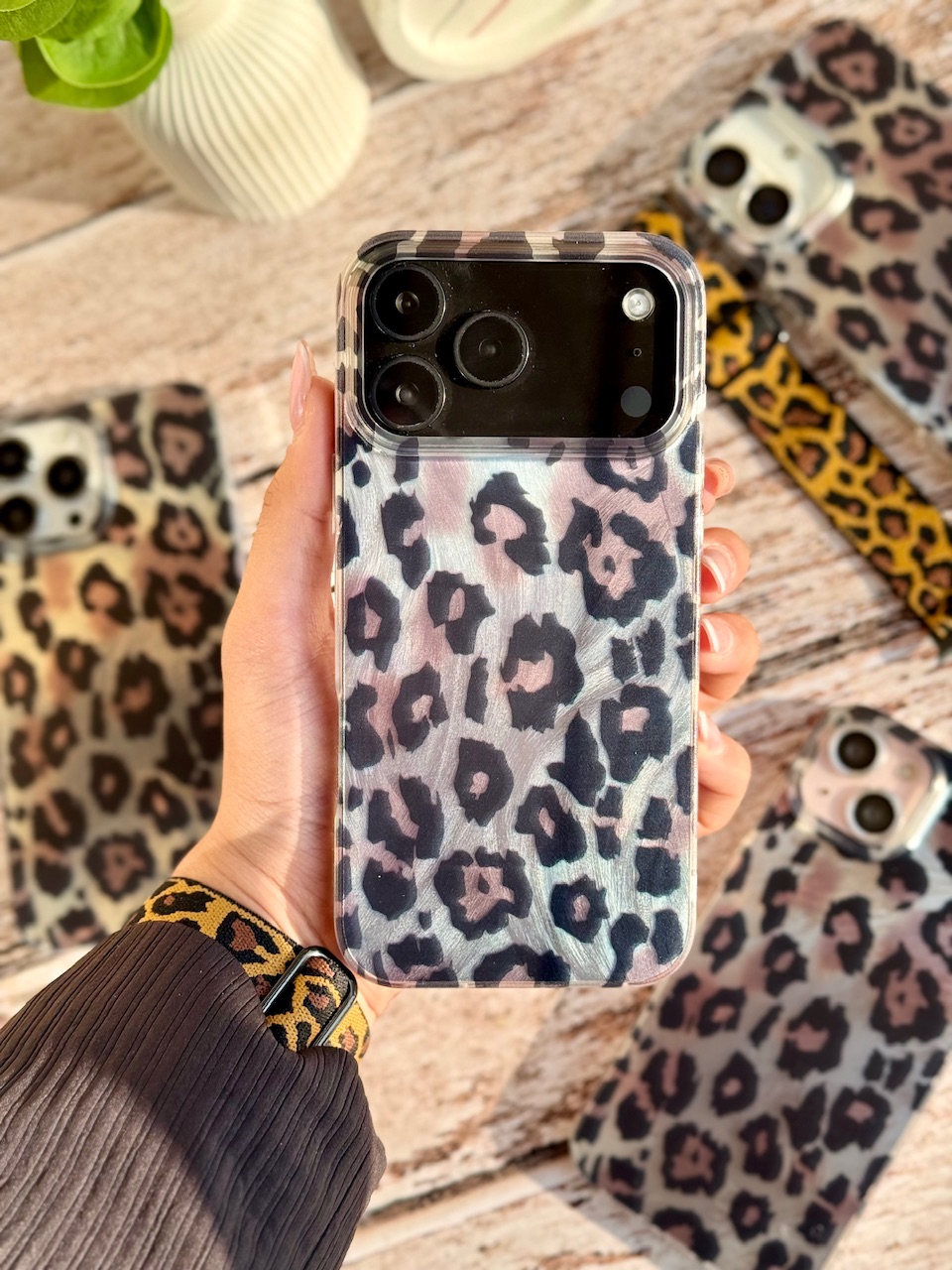 قاب موبایل آیفون گل فلاور کرم فندقی + بند چرمی ست